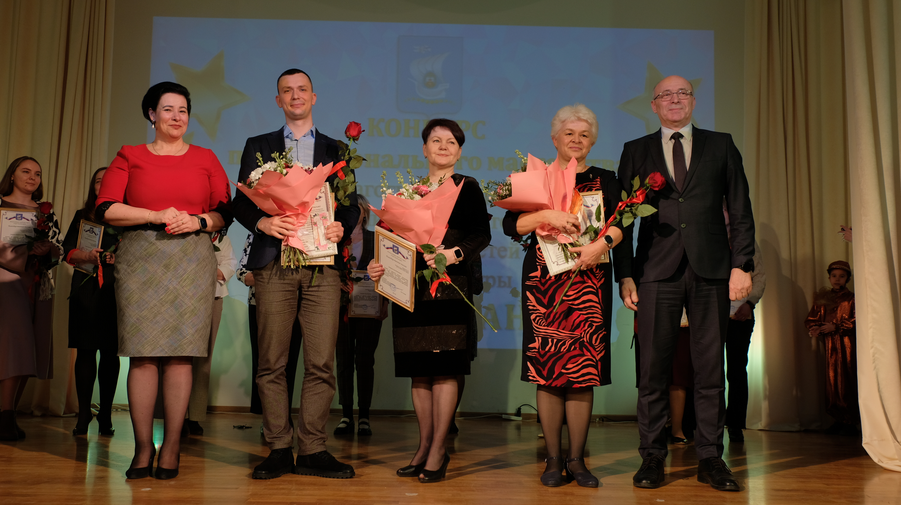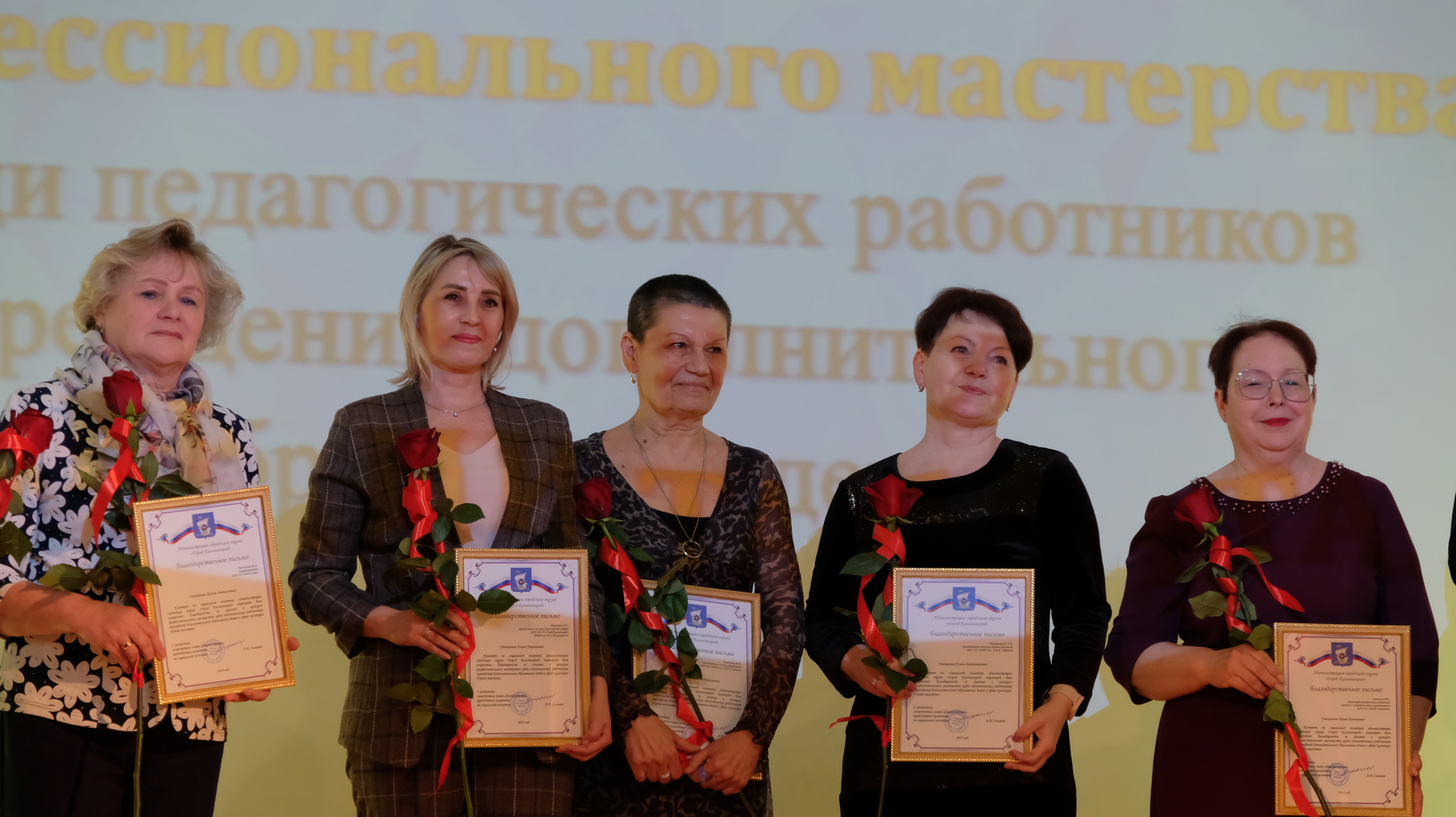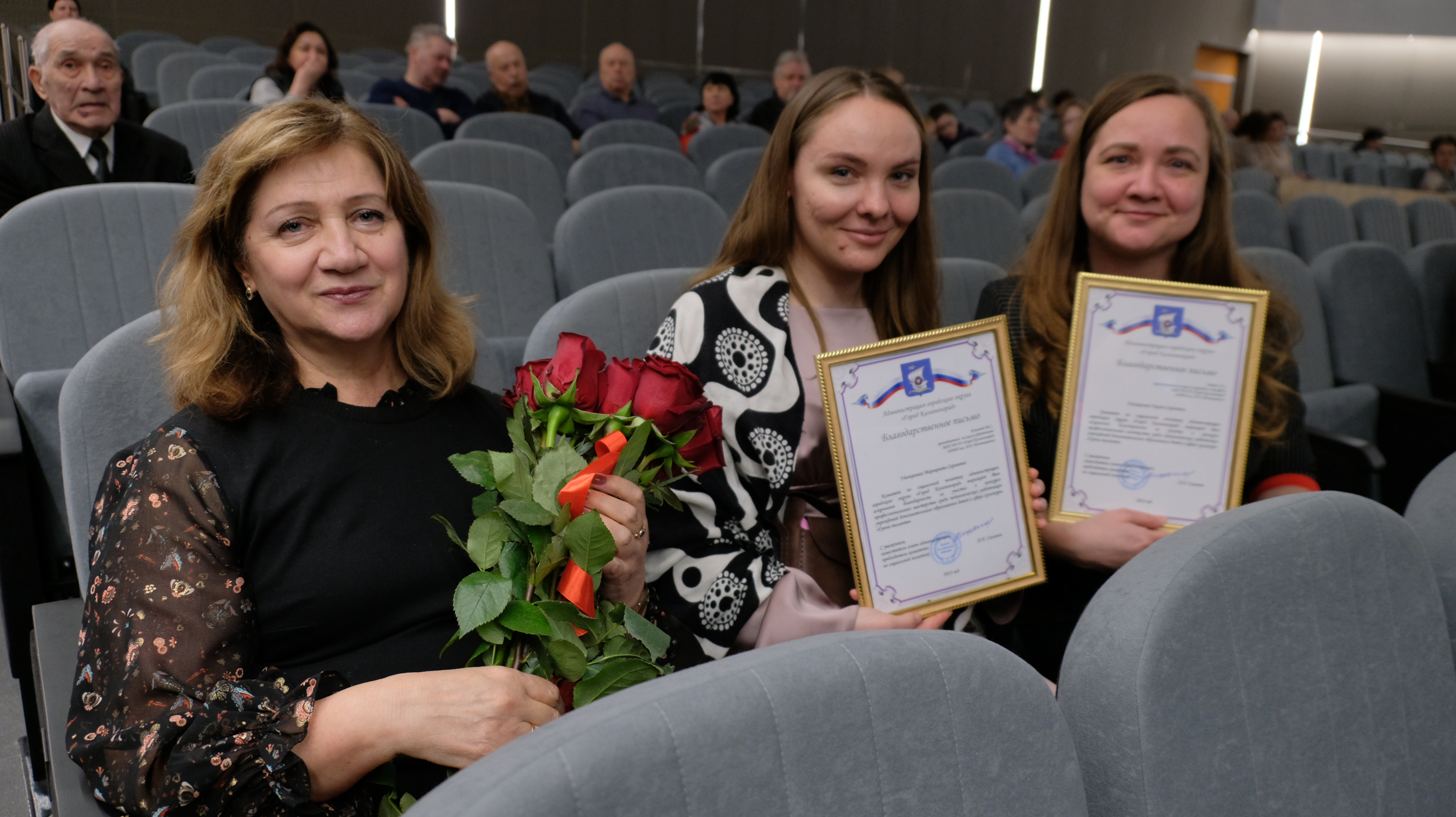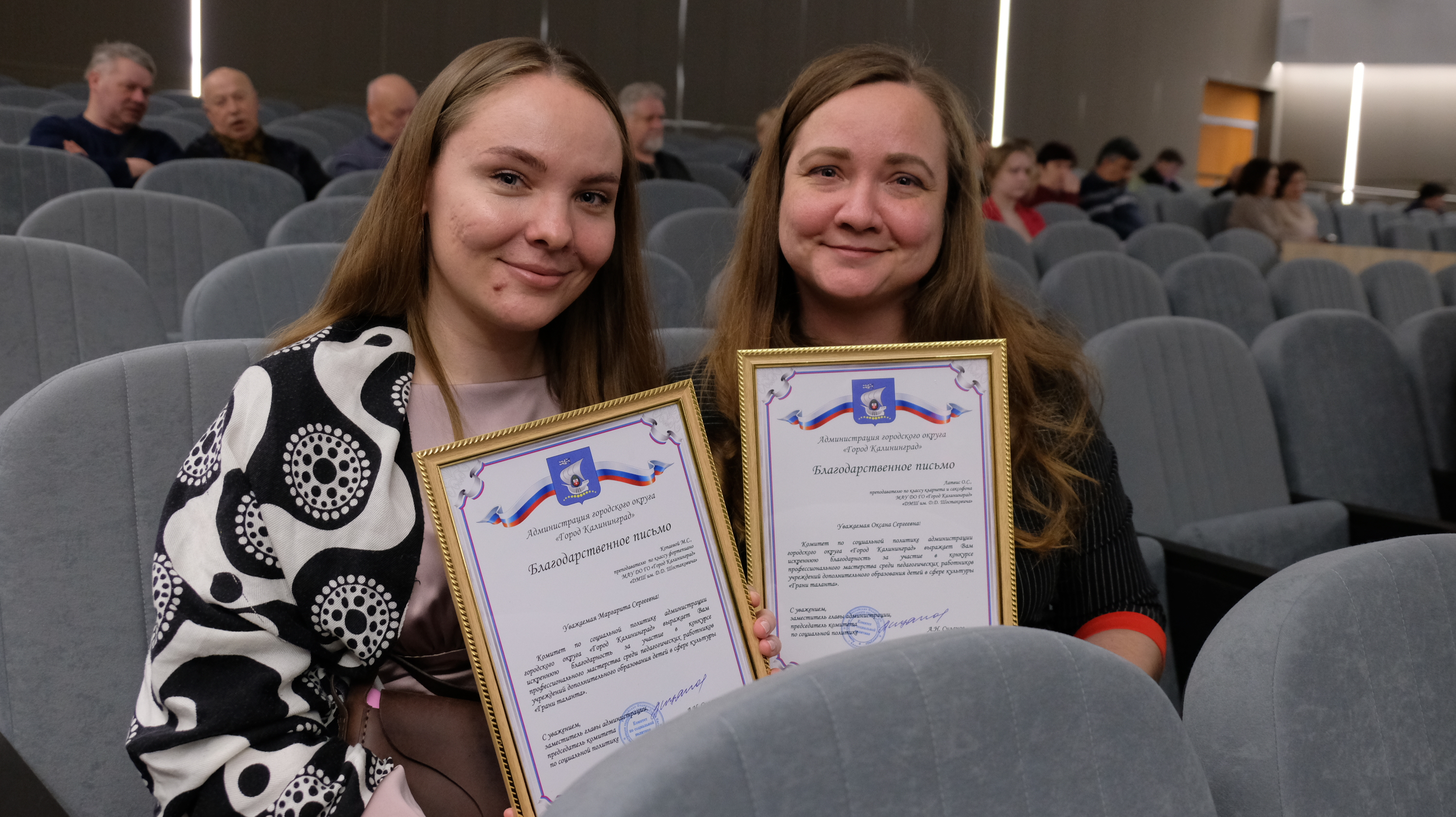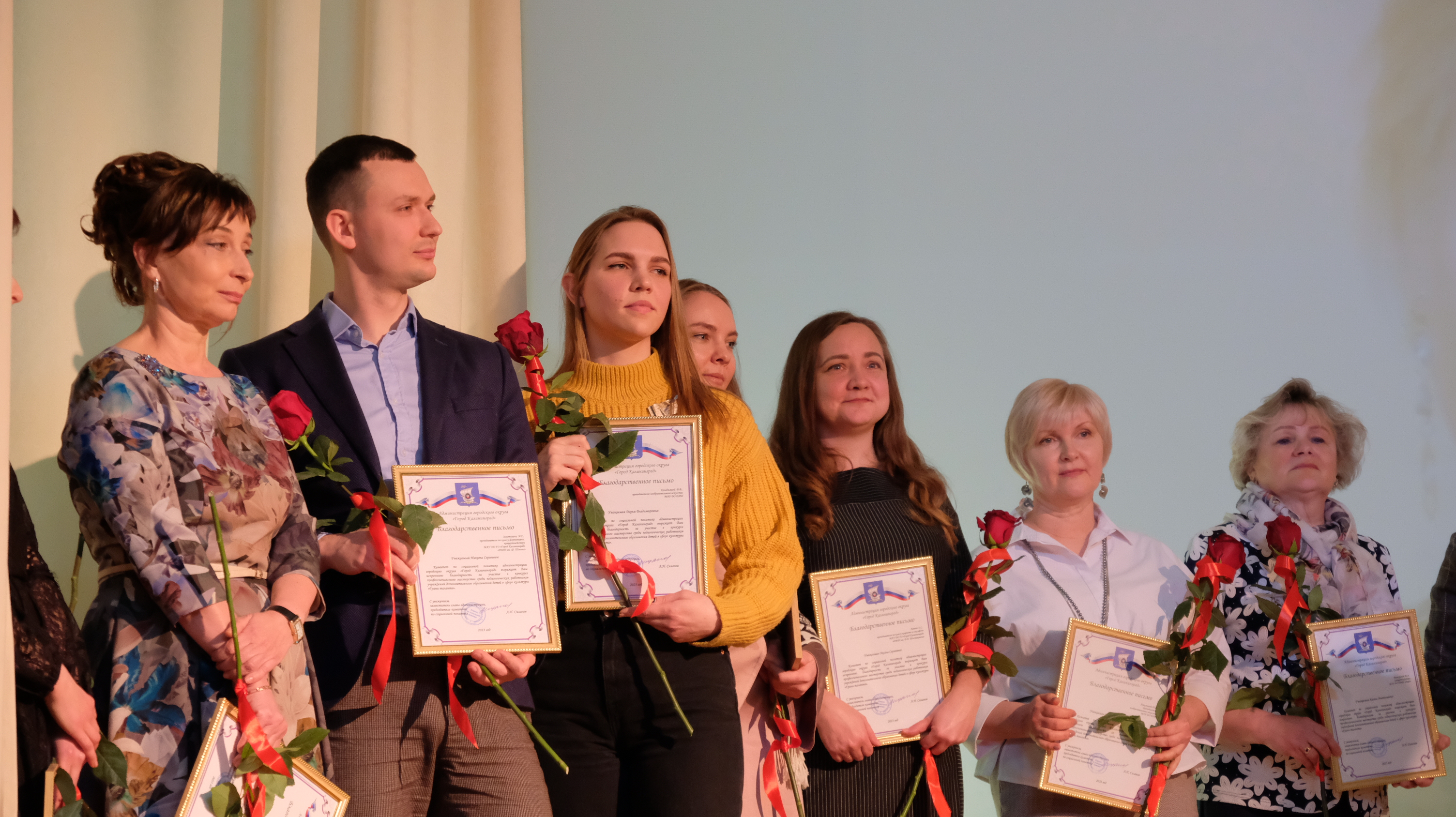 В торжественной обстановке Елена Дятлова и Юрий Саломохин вручили благодарственные письма за добросовестный труд 15 сотрудникам муниципальных учреждений культуры Калининграда и 17 участникам конкурса профессионального мастерства среди педагогических работников учреждений дополнительного образования детей в сфере культуры «Грани таланта».