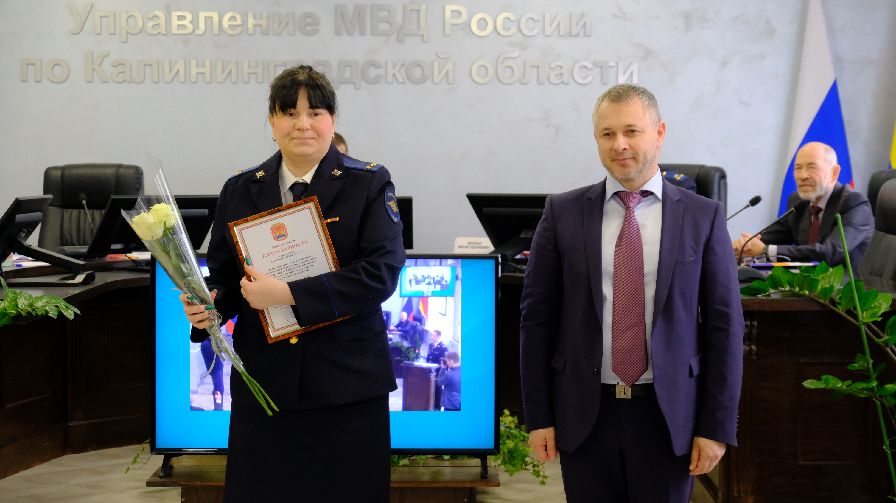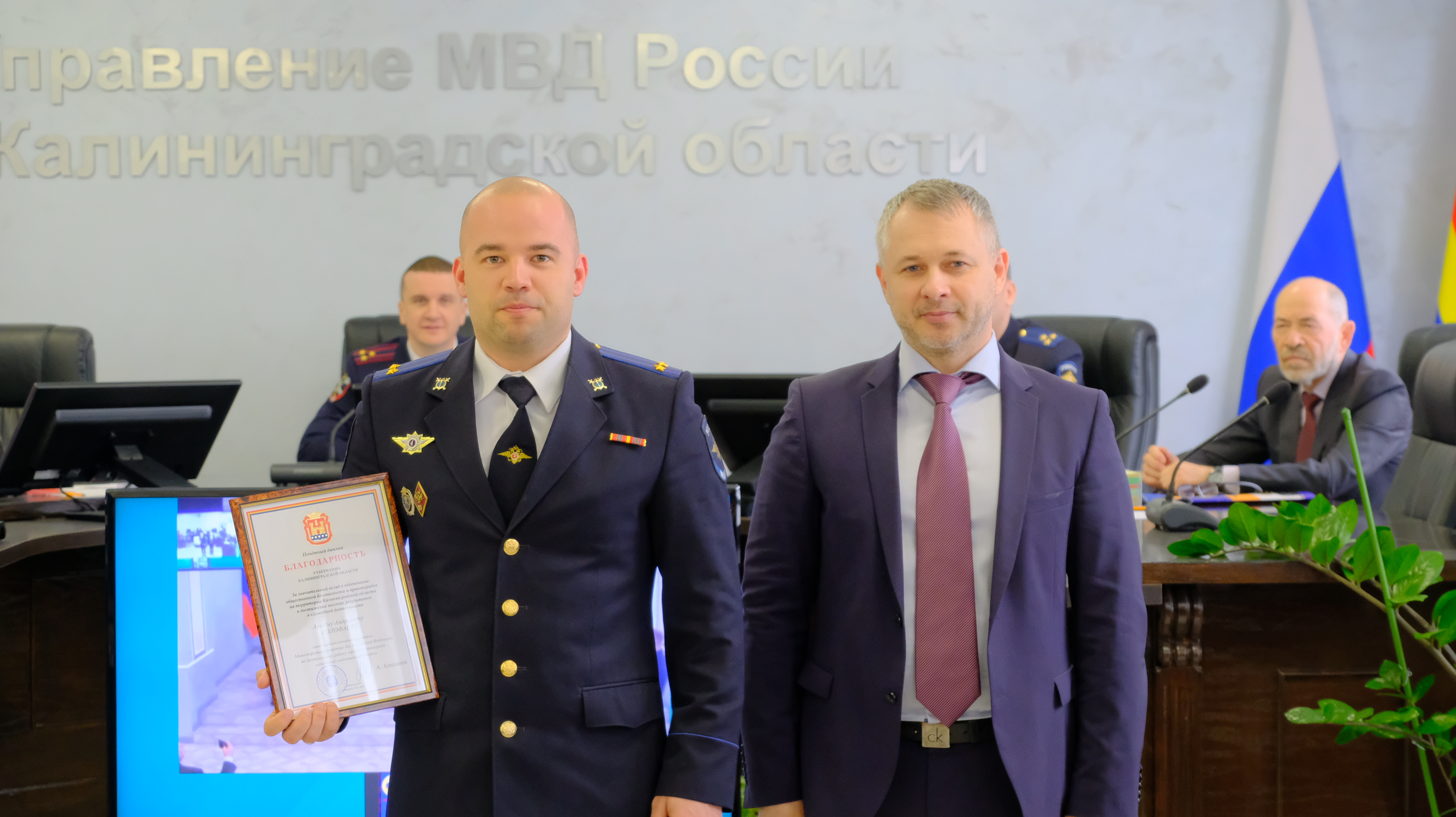 За образцовое исполнение служебного долга, высокие показатели в служебной деятельности, личный вклад в обеспечение законности, правопорядка, общественной безопасности, защиты прав и свобод граждан в Калининграде глава администрации Елена Дятлова вручила благодарственные письма сотрудникам следственного управления УМВД России по Калининградской области.