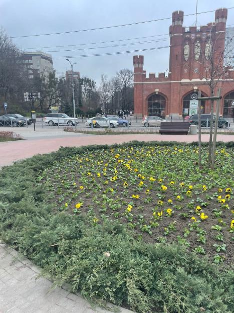 На текущей неделе подрядчик начал высаживать цветы в Калининграде. Самыми первыми на клумбах появились виолы, они же анютины глазки.