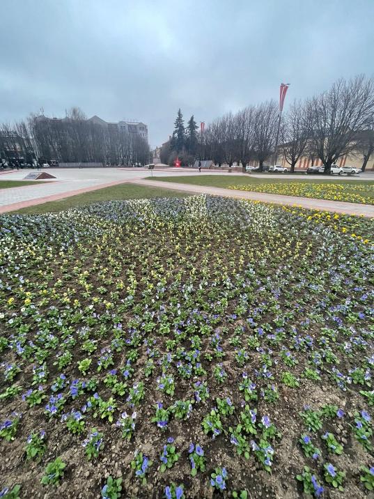 Первые виолы высадили на клумбах площади Василевского, улиц Марата, Дмитрия Донского, Гаражной, Житомирской, Комсомольской у монумента 1200 воинам-гвардейцам, на Верхнем и Нижнем озерах и у Дворца бракосочетаний. В ближайшие дни цветы высадят на Гвардейском проспекте, у памятника Шиллеру, у драматического театра, у монумента «Мать – Россия» и на других объектах.