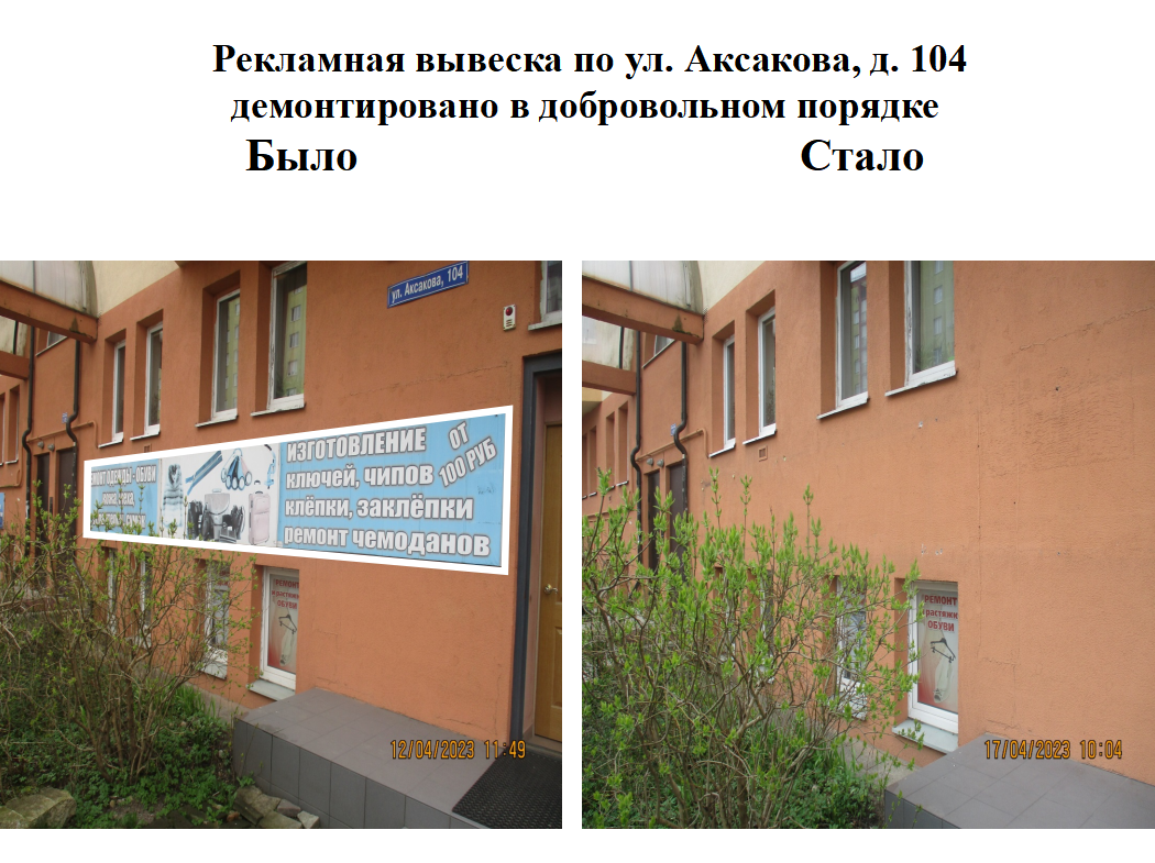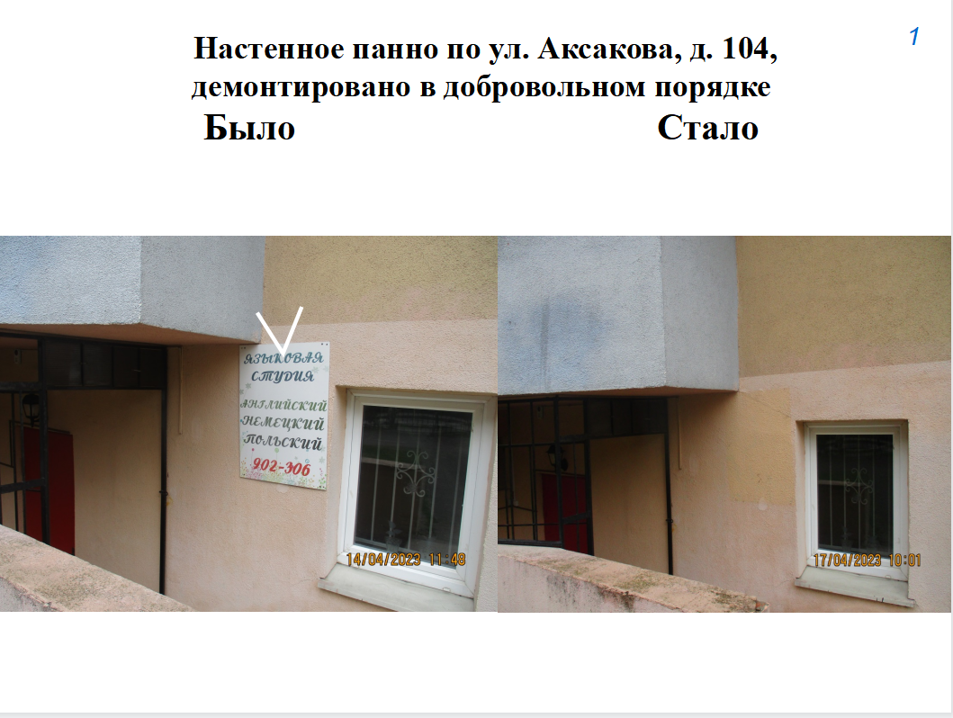 За прошлую неделю муниципальный контроль заставил владельцев незаконной рекламы добровольно снять около 40 несогласованных властями конструкций и “продающих плакатов”. Массовой чистке особо подвергся восток города, в частности на улице Аксакова специалисты администрации отработали не менее 5 объектов.
