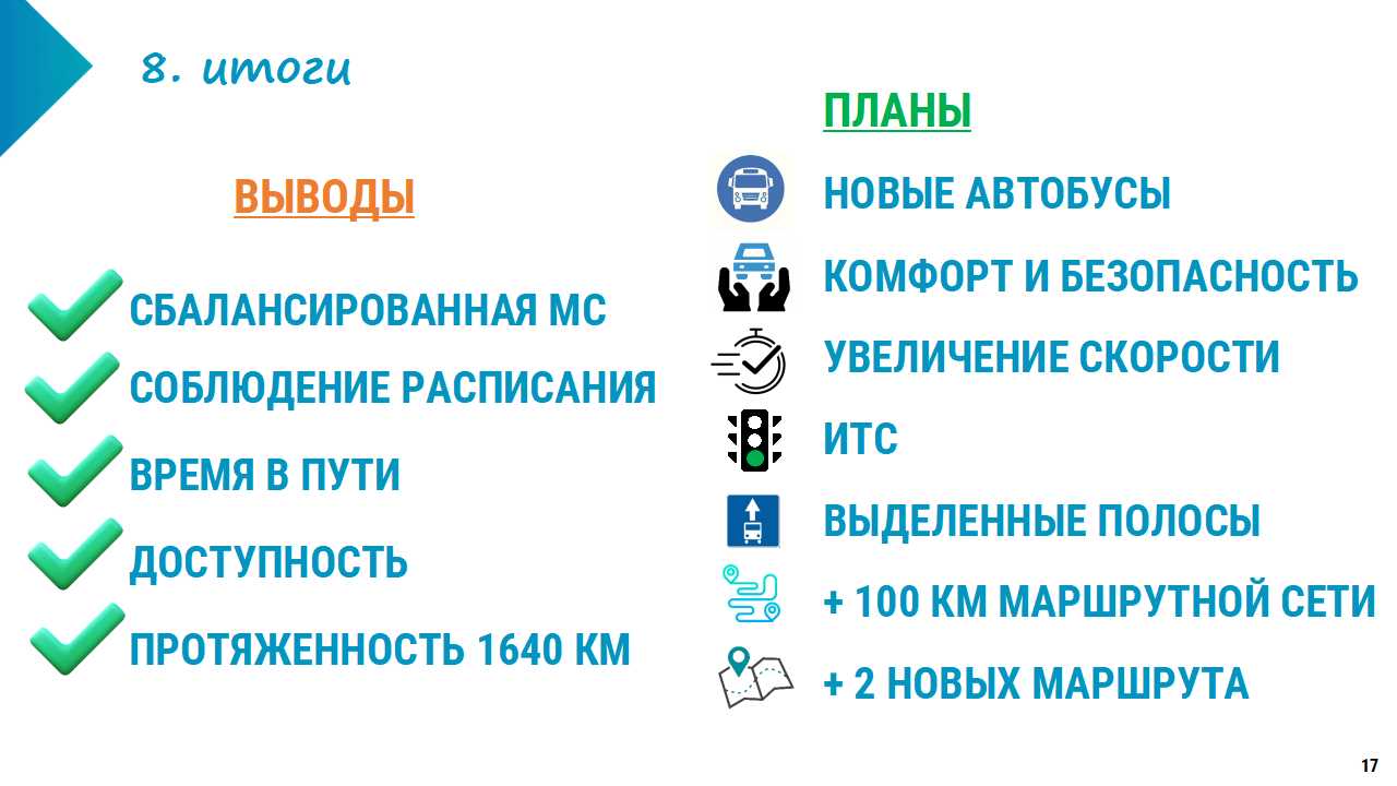 30.11.2023 заканчиваются муниципальные контракты с перевозчиками. Эти контракты были заключены с 01.01.2021. За этот период перевозчиками было закуплено 45 автобусов с низким полом и кондиционерами. Все автобусы были оборудованы видеонаблюдением (минимум 4-мя камерами) и передними электронными трафаретами.