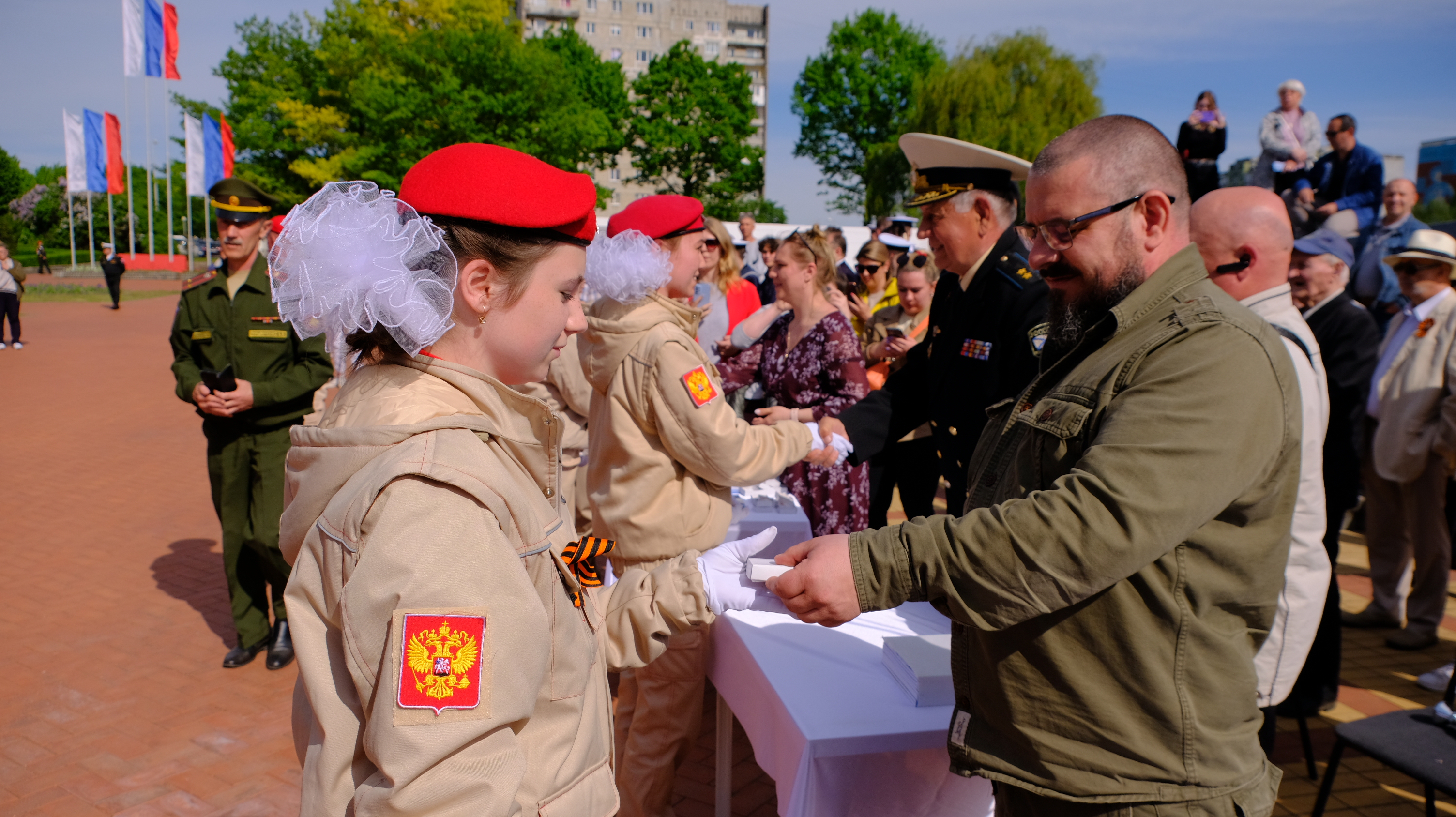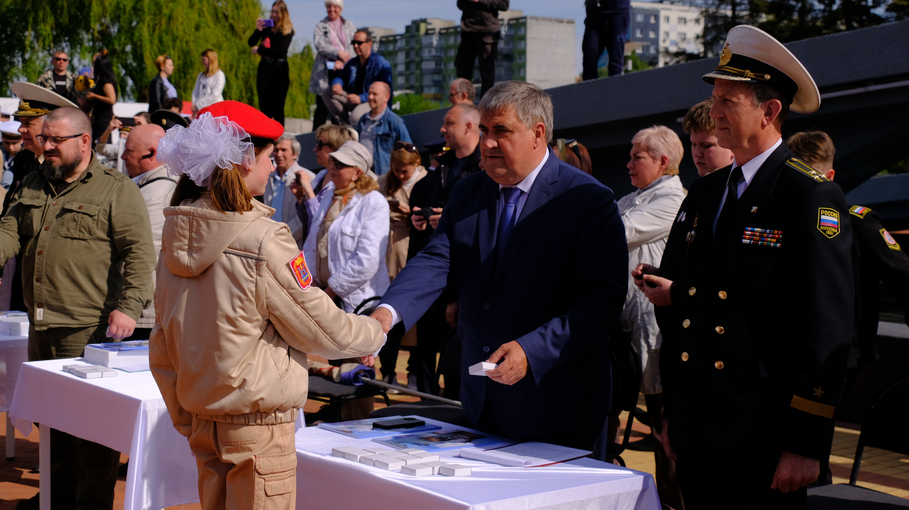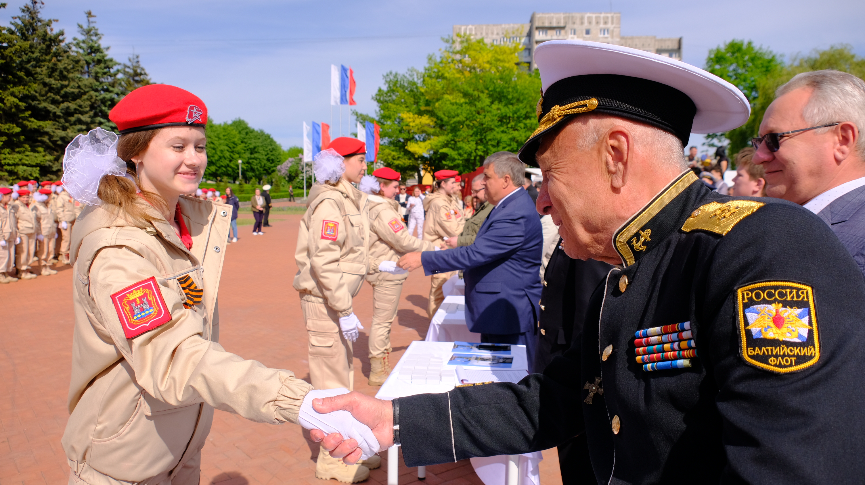 Руководство города и штаба Балтфлота вручили 220 медалей кадетам, юнармейцам из школ города №№ 10, 12, 19, 22, 24, 25, 59, участвовавшим в Параде Победы.