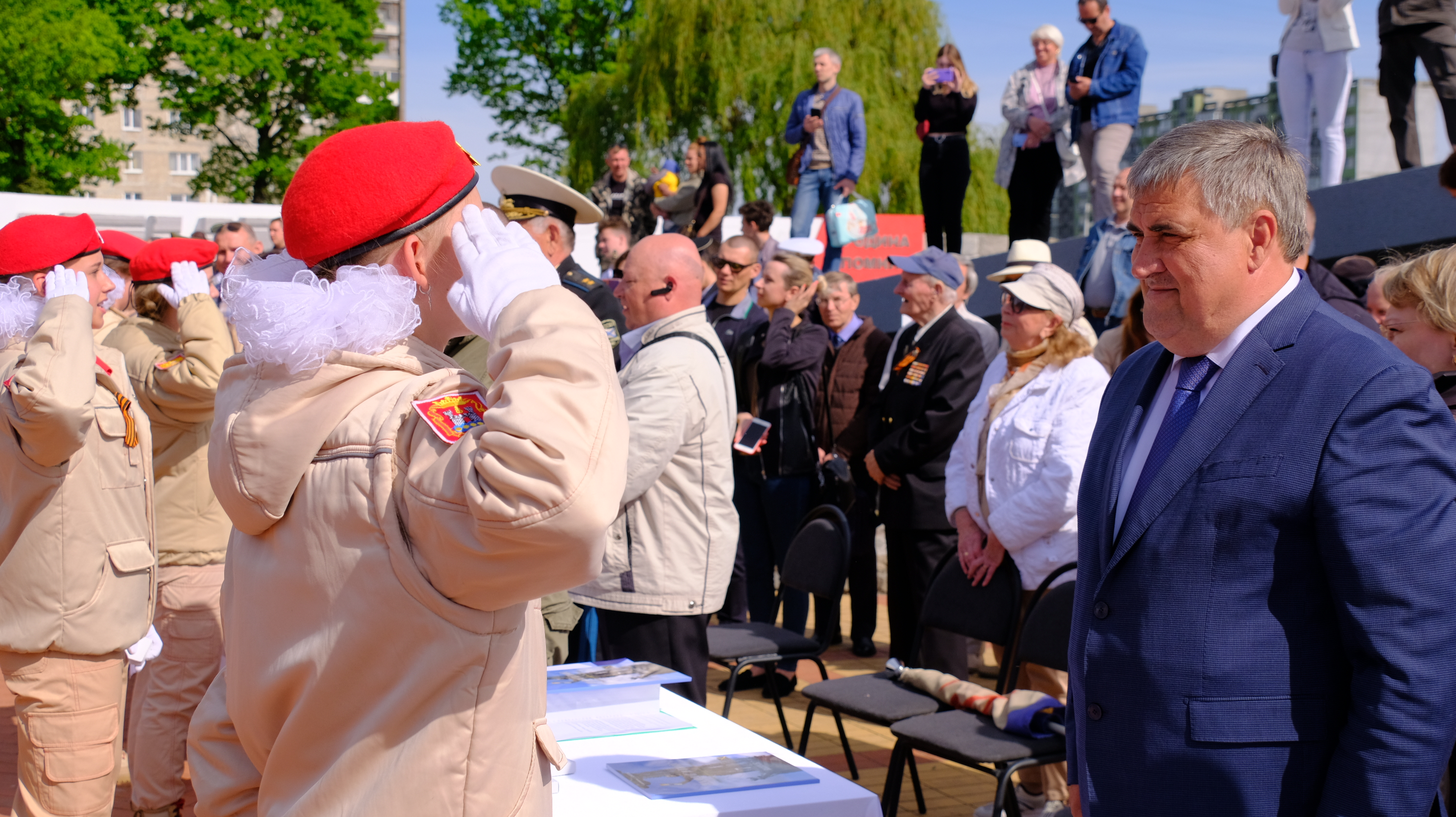 В торжественной церемонии приняли участие глава города Олег Аминов, заместитель главы администрации Алексей Силанов, ветераны ВОВ, казаки Союза казаков России, курсанты КВВМУ им. Ушакова, филиала НВМУ в г. Калининграде, кадеты, юнармейцы общеобразовательных учреждений.