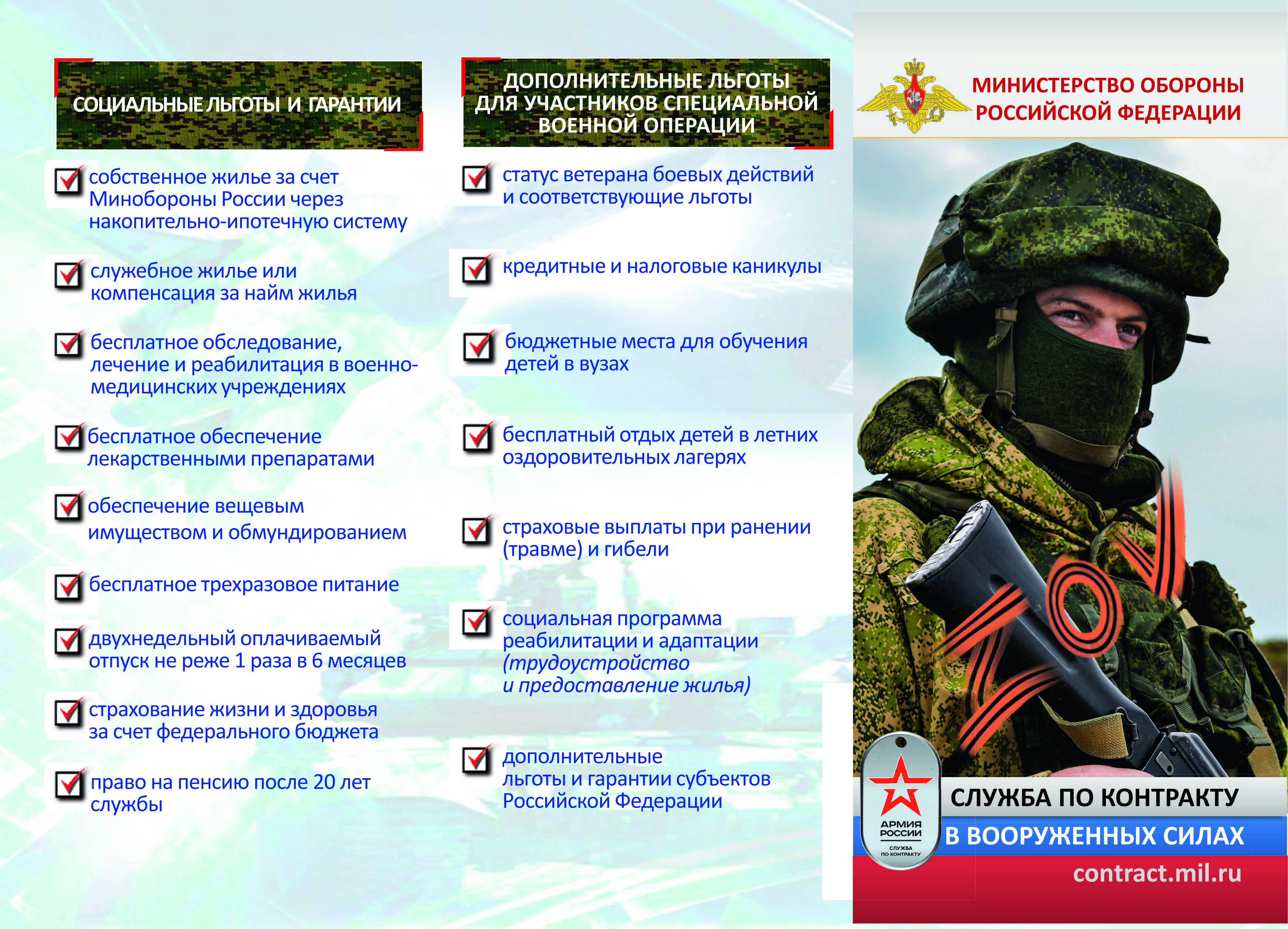 Всем контрактникам предоставляются льготы и другие меры соцподдержки.