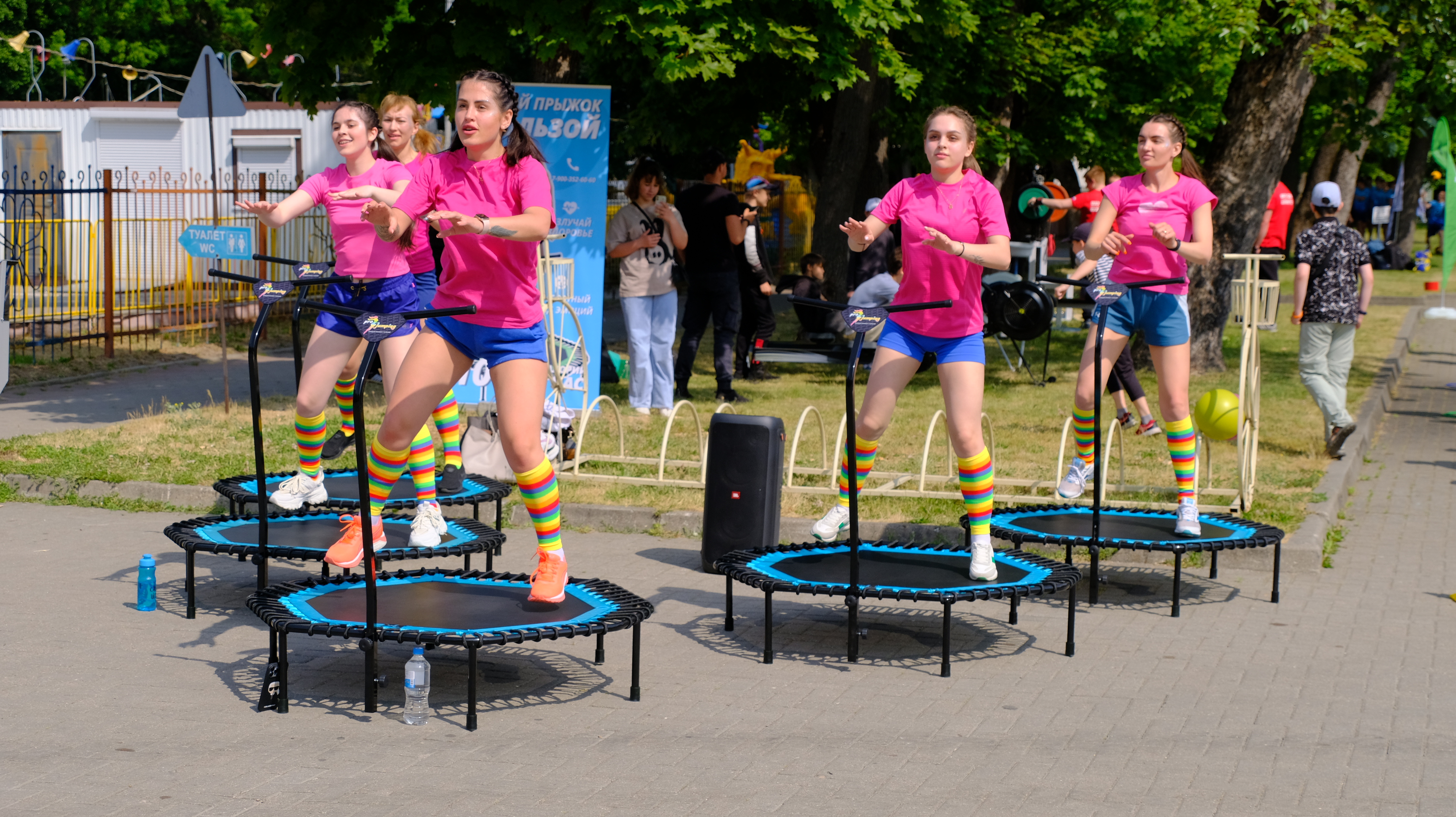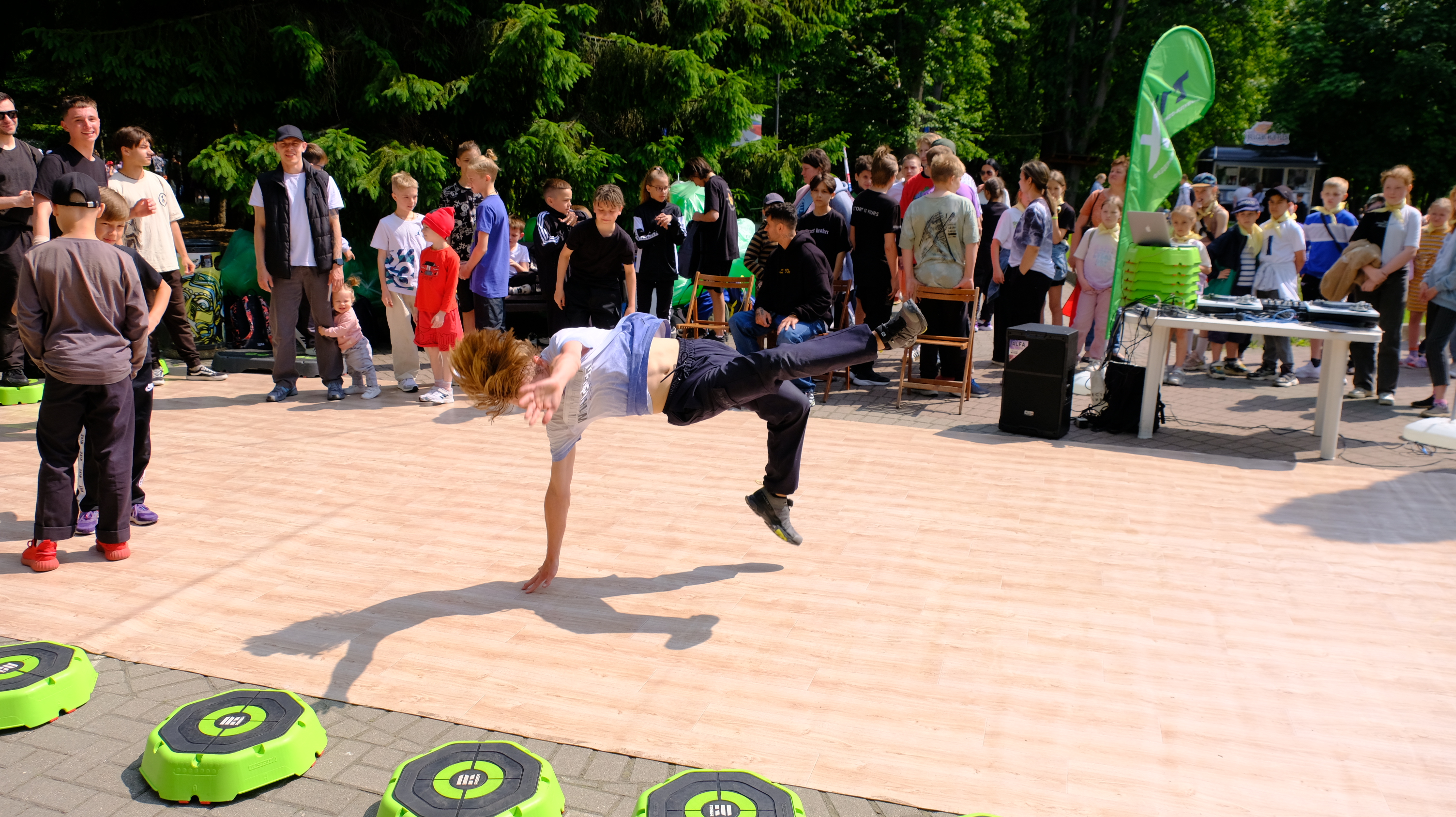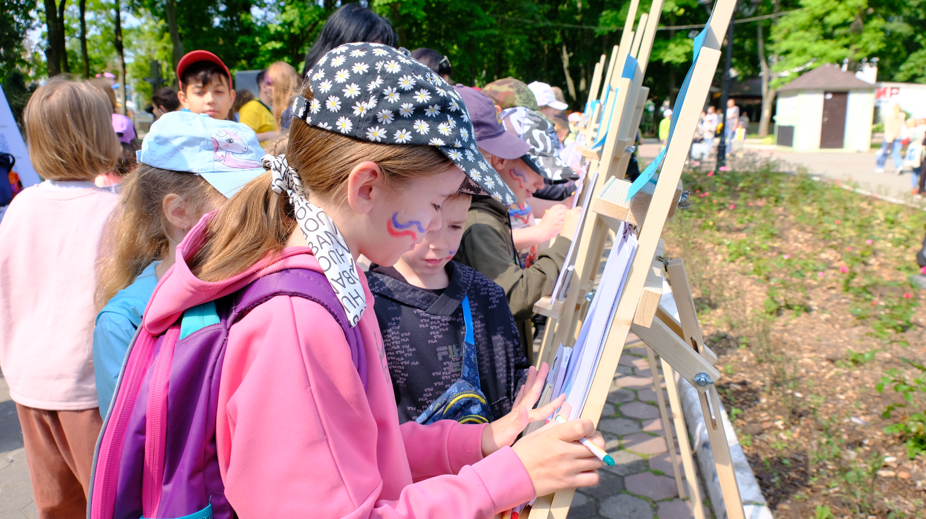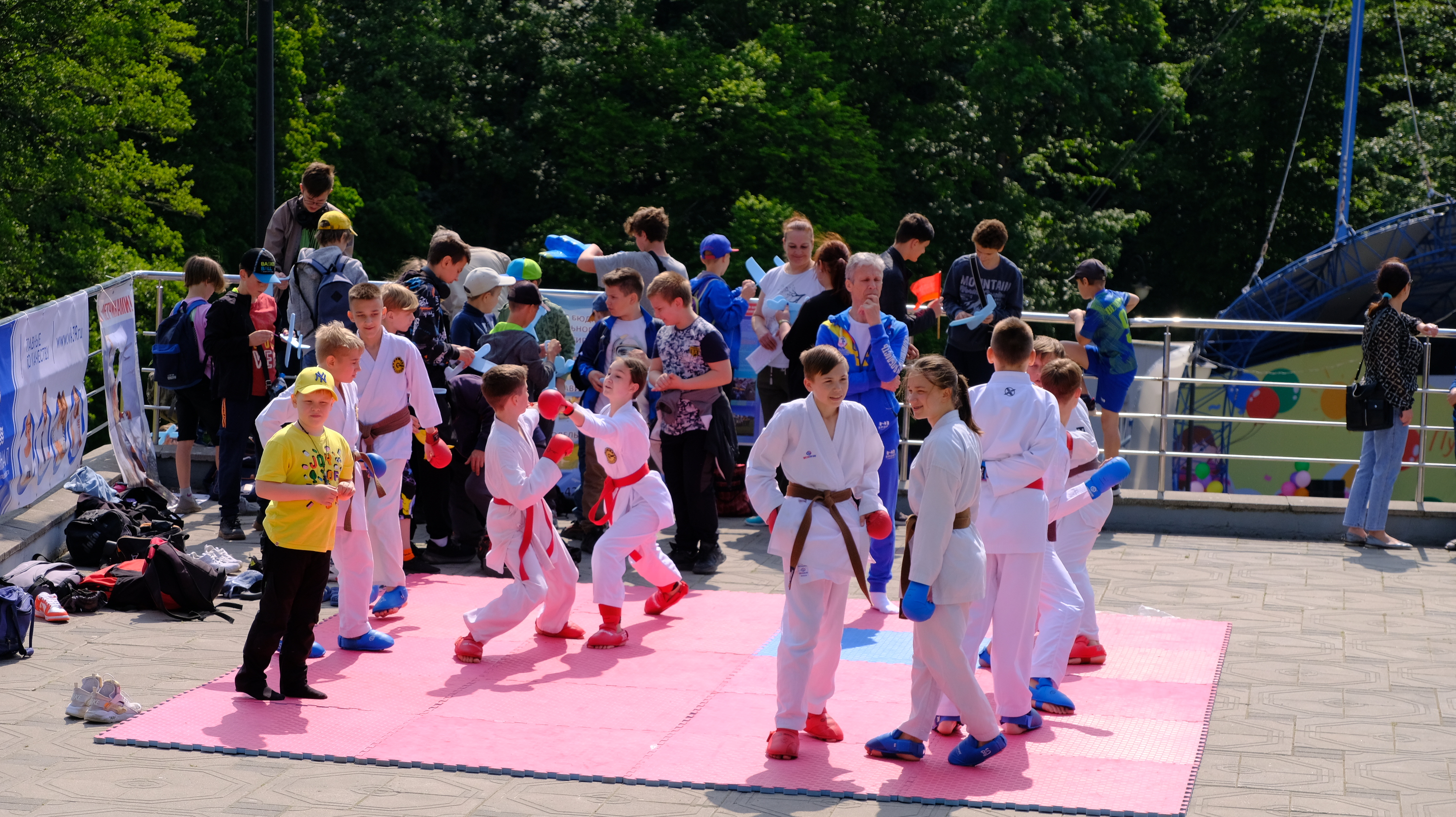 Весь день на территории парка проходят мероприятия: выставка работ III открытого городского конкурса креативных проектов и идей по развитию инфраструктуры города «Город Калининград – город будущего глазами детей», мастер-классы по прикладному искусству, работает зона технического творчества робототехники, можно поучаствовать в прохождении трассы радио-управляемыми машинками, проводятся соревнования по шахматам, на спортивной площадке показательные выступления по волейболу, баскетболу, каратэ, спортивной гимнастике, имитация гребли на байдарках и каноэ с веслом, мастер-класс по теннису, по силовым видам спорта, а также прием испытаний комплекса ГТО.