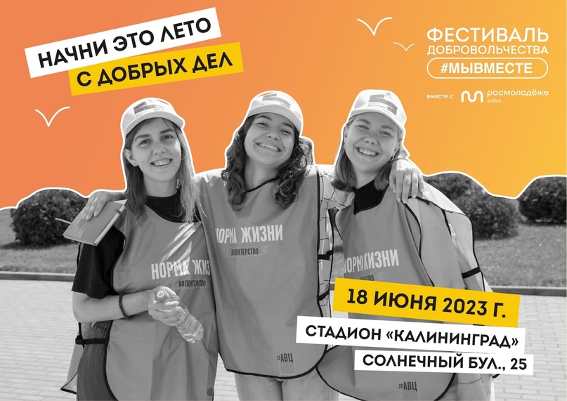 18 июня в 12:00 на стадионе «Калининград» стартует первый в нашей области Фестиваль добровольчества #МЫВМЕСТЕ.