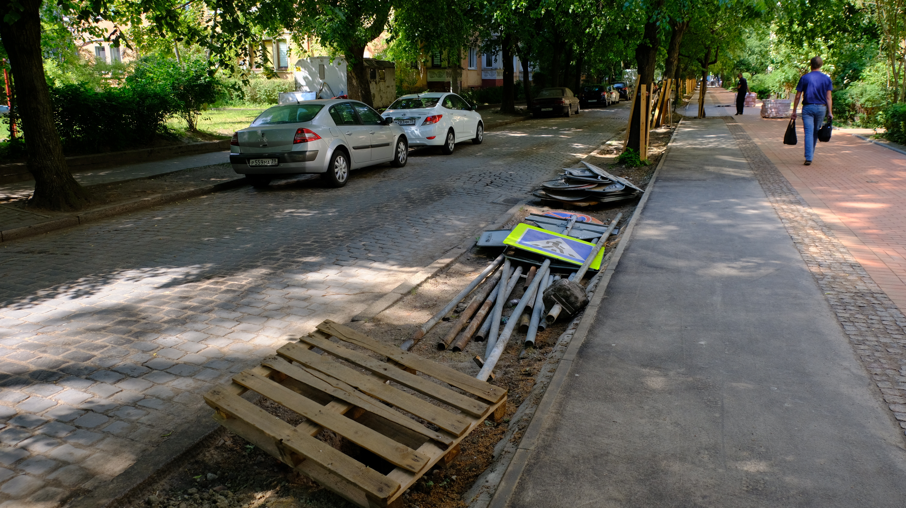 Ещё один подрядчик в прошлом месяце начал на улице переустройство сетей наружного освещения.
