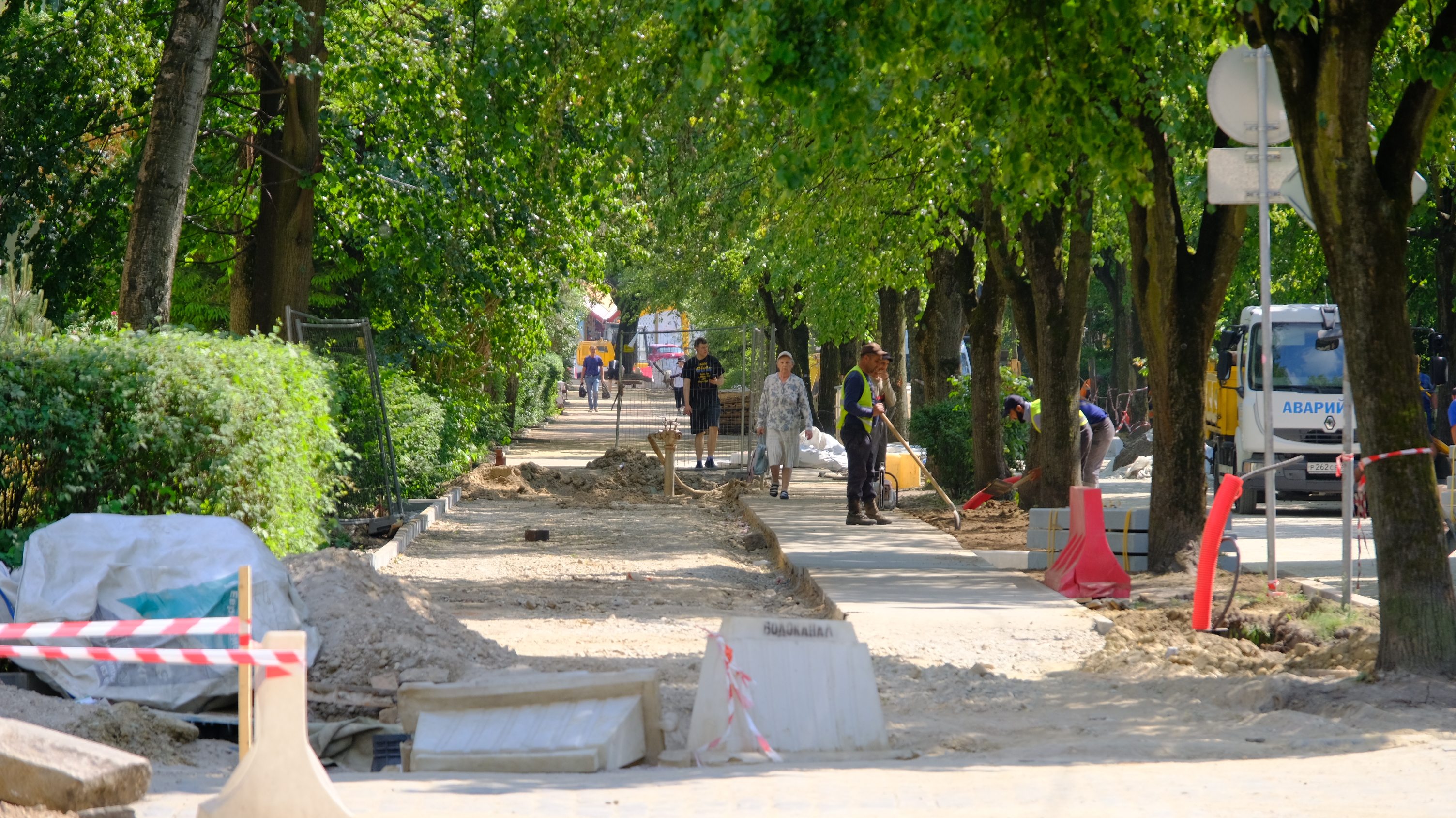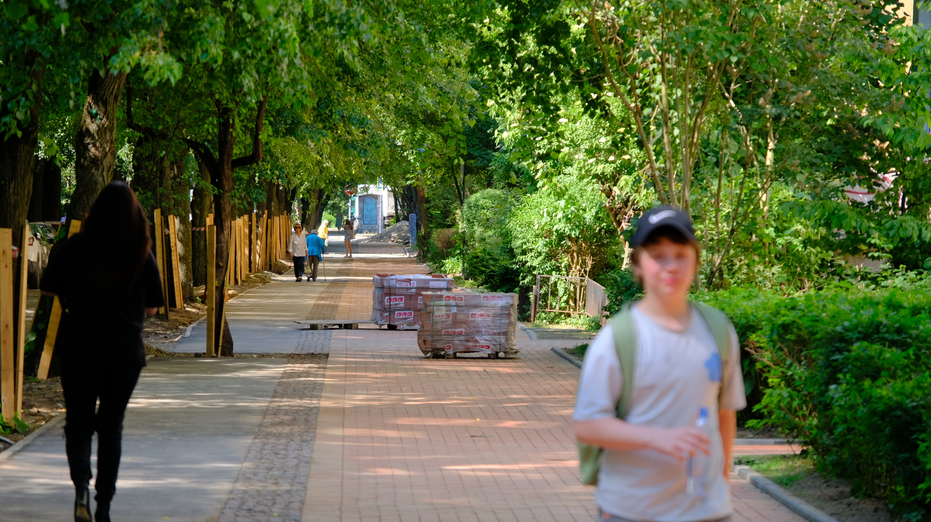 “Мы применяем здесь современные материалы, вы же видите, что тут современная клинкерная плитка лежит, а там старая брусчатка. Здесь и так много современного. Оставить “исторический” бордюр в этом месте не представляется возможным, потому что неровности и сколы, которые образовались на нём в процессе эксплуатации, не позволят сделать улицу ровной и нарядной. Но мы сохраняем бордюрный камень, чтобы использовать его на других улицах, например на Пацаева”, - рассказал и.о. главы администрации города Игорь Шлыков, упомянув при этом начавшуюся уже разработку проекта капремонта соседней улицы.