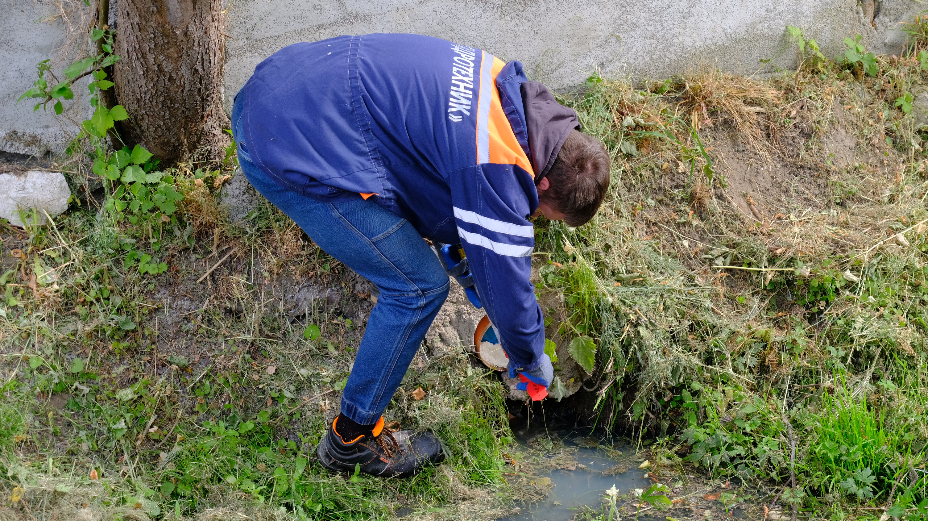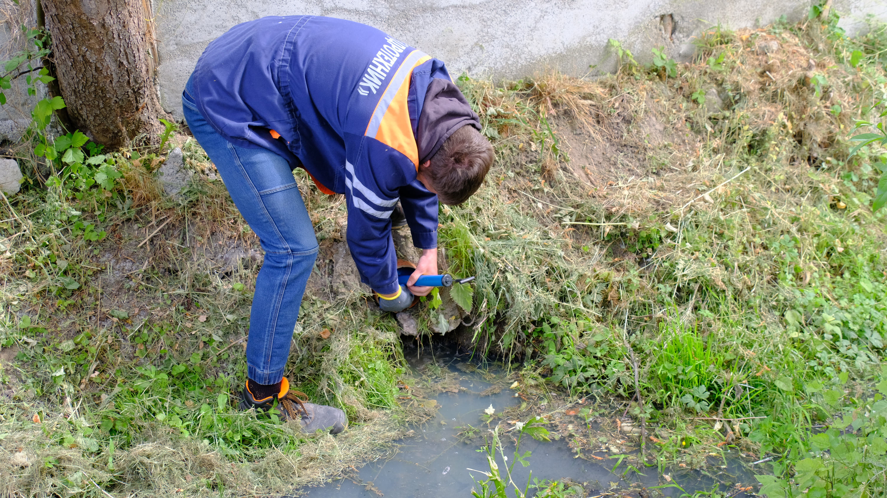 Основная цель визита в этот район – комплекс жилых домов на Согласия, 56. Поскольку этот район пока ещё не канализован, застройщик принял решение установить локальную станцию биологической очистки. Её, как и всё остальное общее имущество дома, нужно регулярно обслуживать. Как выяснили специалисты МБУ «Гидротехник», этого не происходит, и неочищенные стоки сбрасываются в мелиоративный канал. В таких случаях проводится тампонирование выпусков. Прежде чем затампонировать их, проводят лабораторные исследования из каждого зафиксированного выпуска для подтверждения сброса хозяйственно-бытовых стоков.