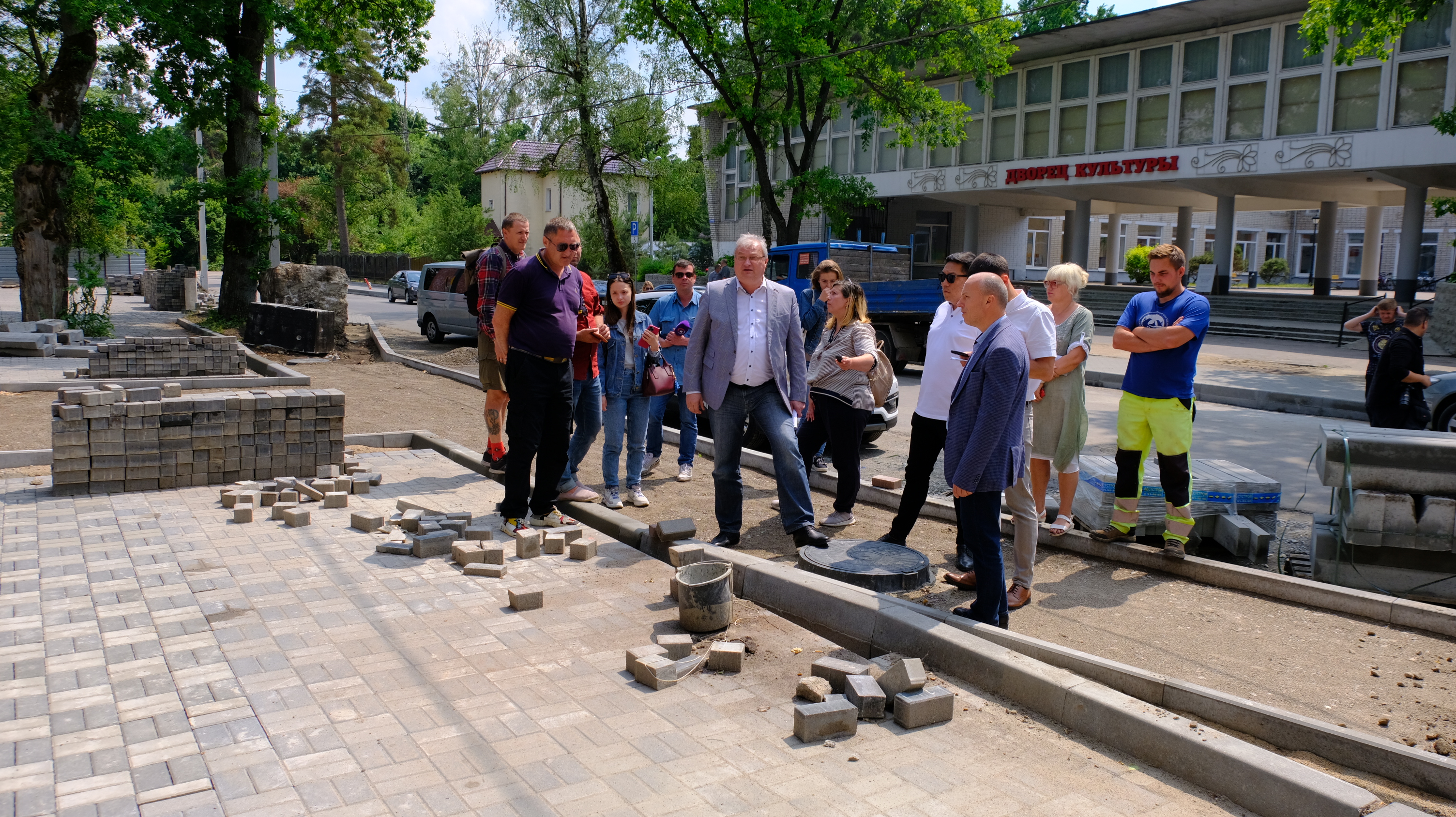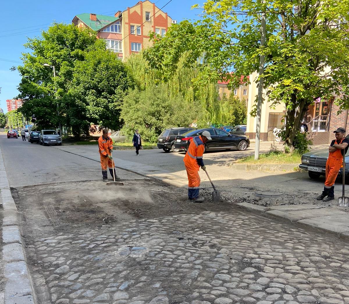 По ул. Красной на участке от пр. Мира до К. Маркса 15 июня после очистки и калибровки начали возвращать брусчатку, а дорожники приступили к её укладке. Здесь продолжается устройство плиточного покрытия, установка бортового камня, устройство корыта и бетонного основания проезжей части.