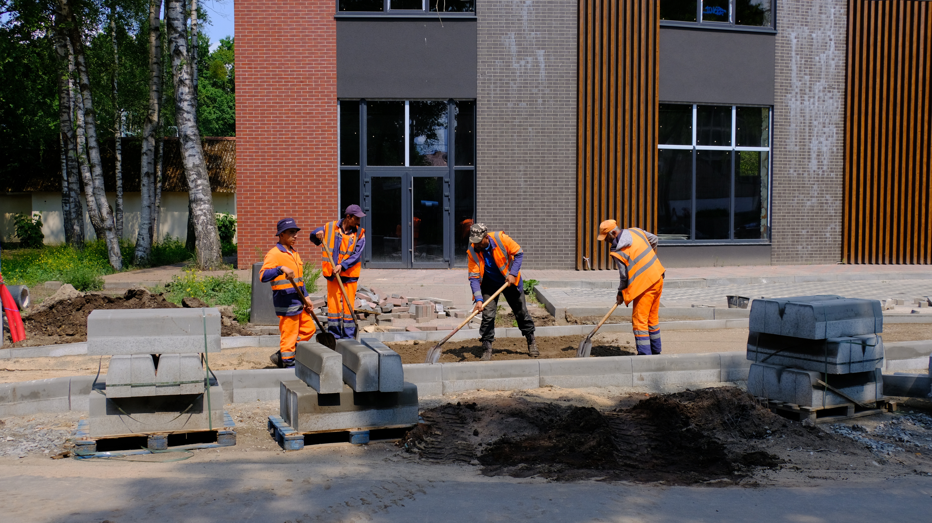 На новых тротуарах по улицам Солдатской и Кронштадской подрядчик наводит порядок и устраняет выявленные недоделки.