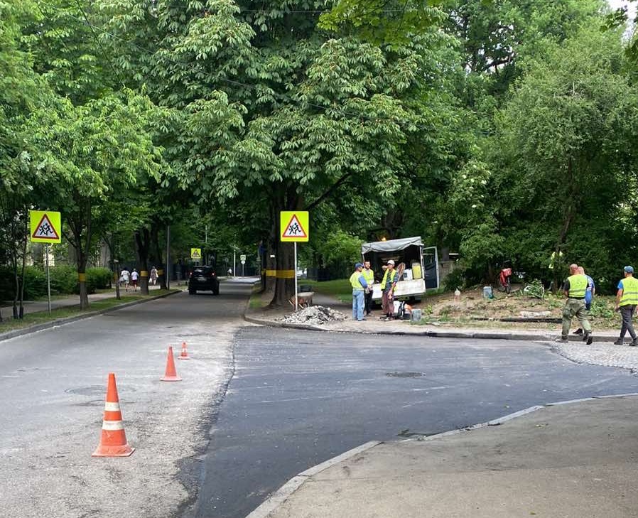 На ул. Театральной, где только что отремонтировали тротуар и дорогу, дорожники работают над замечаниями и монтируют пешеходное ограждение, послеремонтный лоск наводят также на свежеотремонтированных тротуарах по Кронштадской и Солдатской.