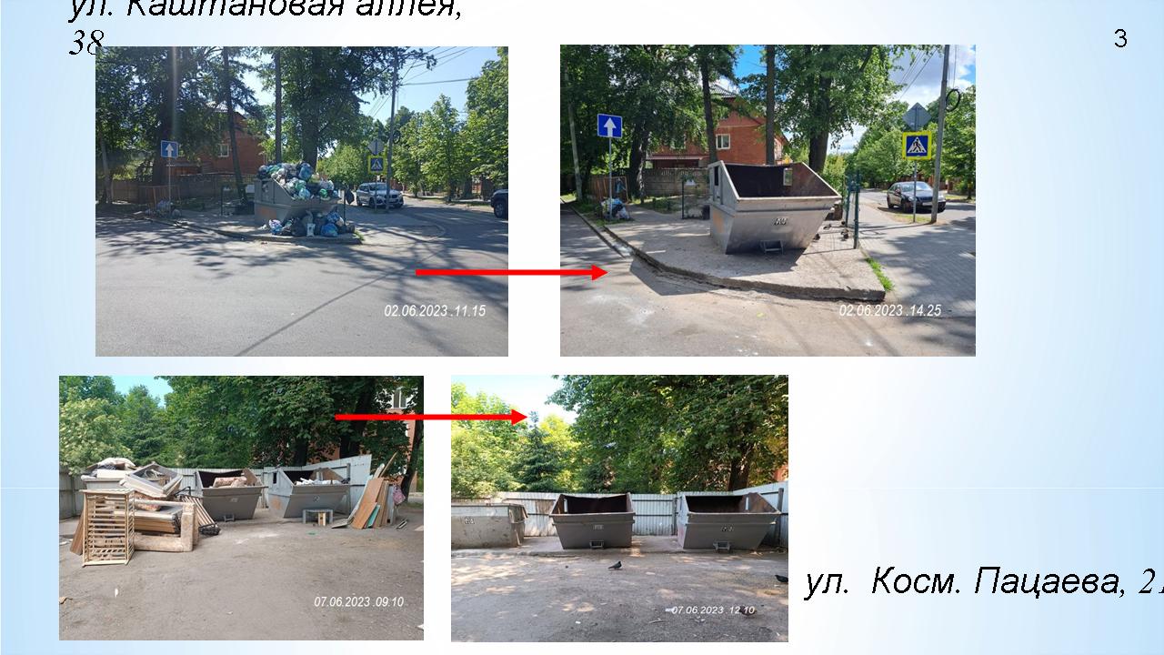 По фактам выявленных нарушений: устранено на месте 717 нарушений (приведены в надлежащее санитарное и техническое состояние территории, контейнерные площадки, объекты благоустройства); направлено 286 обращений о принятии мер по их устранению (ненадлежащее санитарное состояние территорий, ненадлежащее техническое состояние фасадов зданий, ограждений, объектов коммунальной инфраструктуры, в том числе наличие граффити).