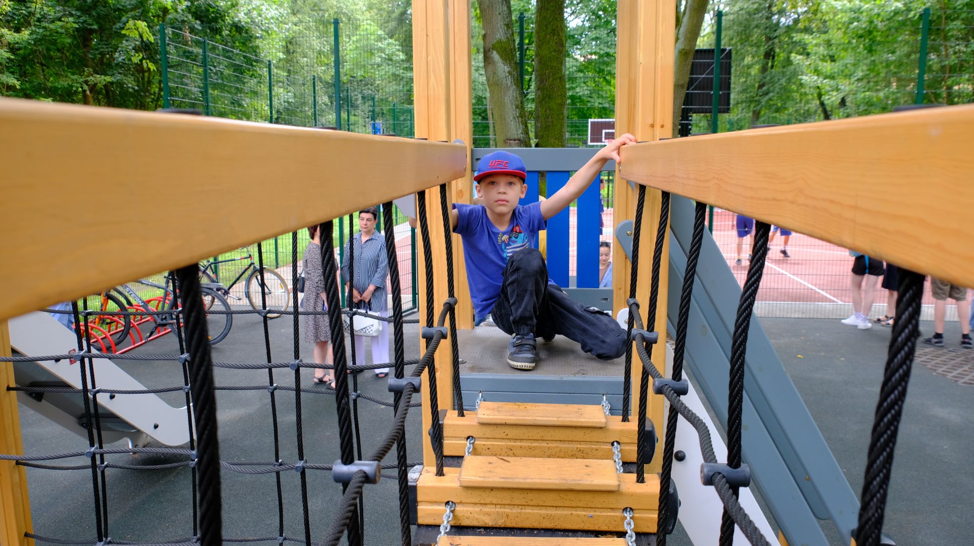 На площадке выполнен большой объем работ, начиная от дренажных работ и заканчивая установкой спортивного оборудования. Сделали небольшое поле для футбола с искусственным покрытием, с трибунами для зрителей, гимнастическую и разминочную площадку. Установили скамейки, урны, ограждение площадки. Установлены горки для маленьких детей, для ребят постарше - новые игровые элементы. Впервые было сделано детское игровое оборудование из натуральных ЭКО-материалов, мягких, пастельных тонов. Материалы с течением времени сохраняют внешний вид и функциональное назначение. Все оборудование строго соответствует требованиям технических регламентов, что подтверждено независимыми экспертами.