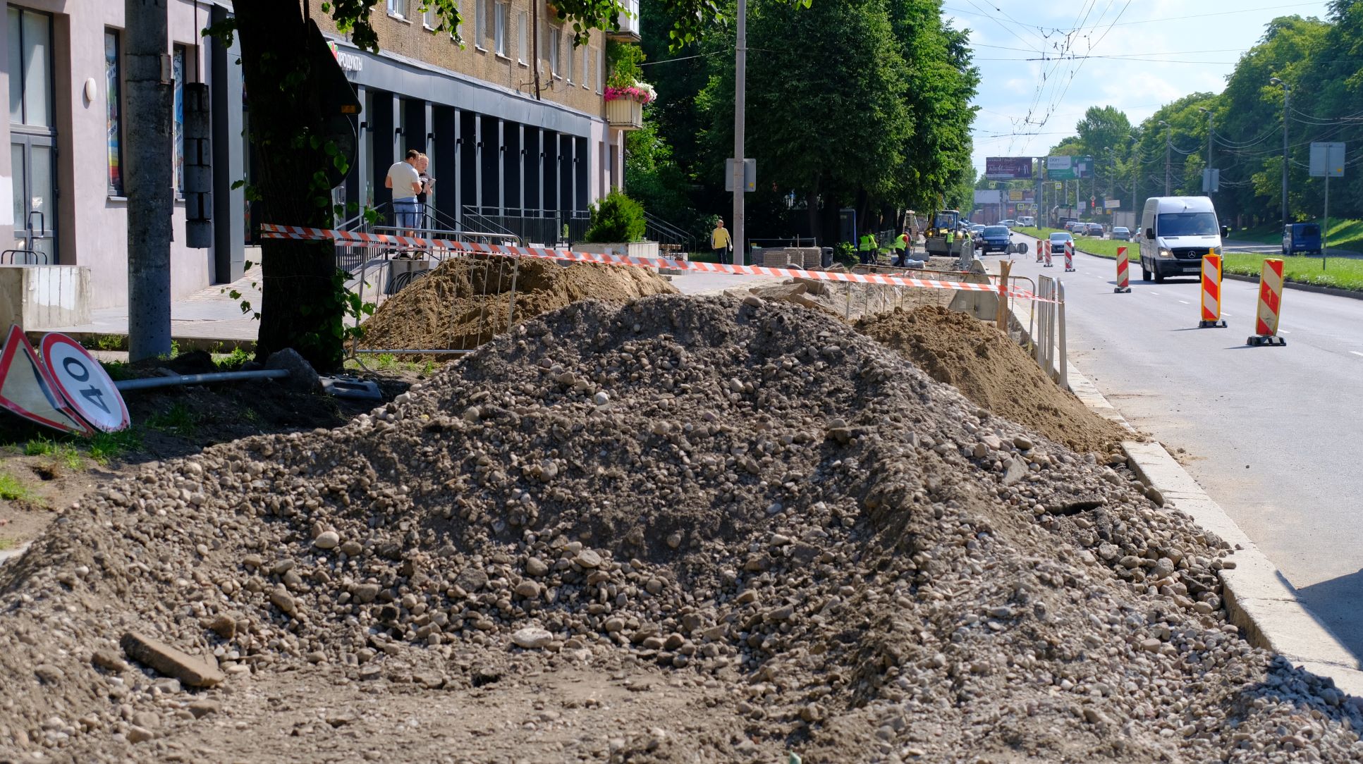 Второй проинспектированный Еленой Дятловой объект – тротуар по нечётной стороне на пр. Калинина (от Ленинского пр. до ул. Октябрьской). Его протяжённость 880 метров, рабочие также идут в графике. Сейчас подрядчик снимает старый асфальт и устраивает щебёночное основание. Также проект предусматривает и ремонт автопарковки.