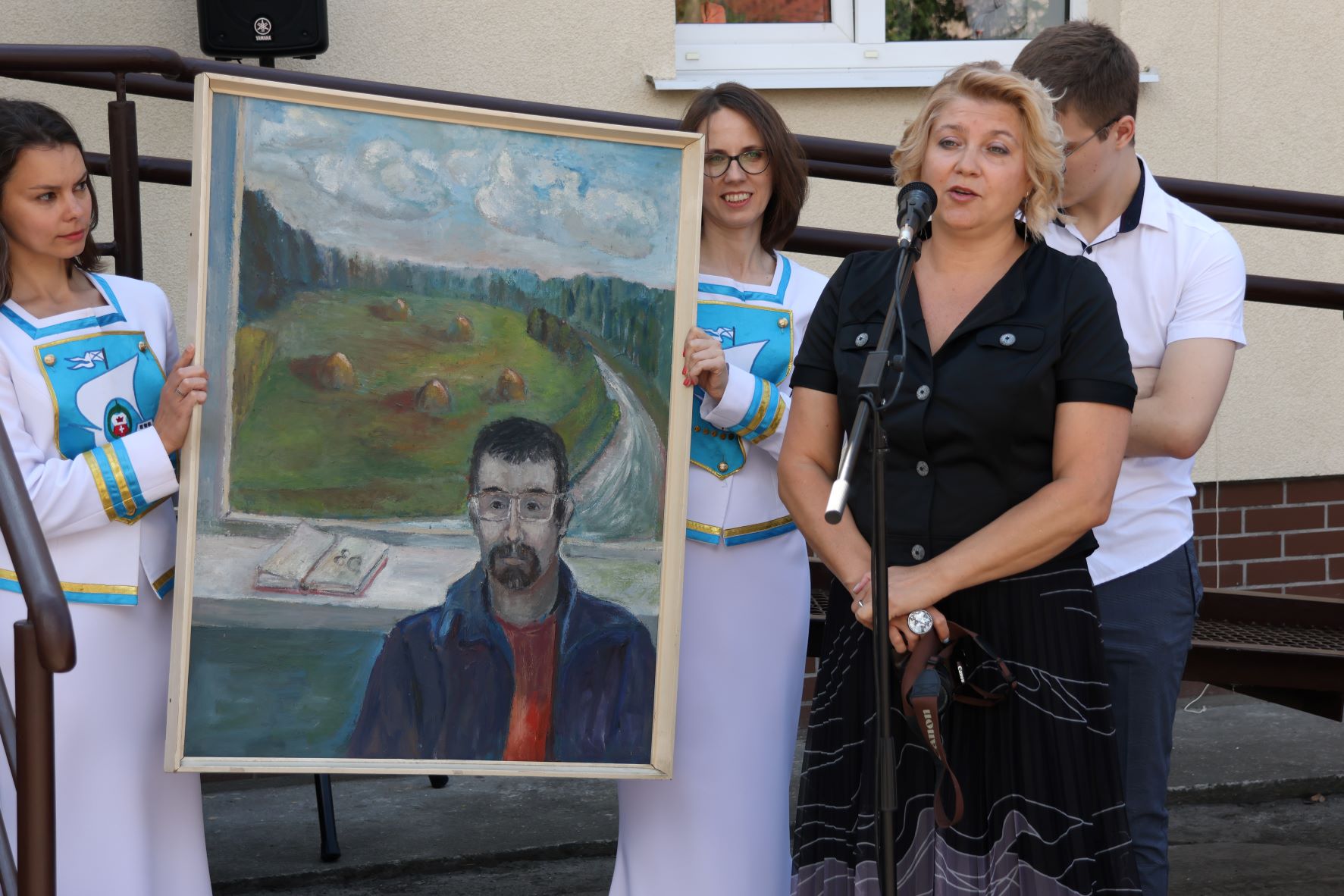 Почетные гости подарили библиотеке новые книги. Родные режиссера - невестка Елена Михайлова и внук Максим Михайлов поблагодарили за память, любовь и уважение и подарили библиотеке портрет режиссера.