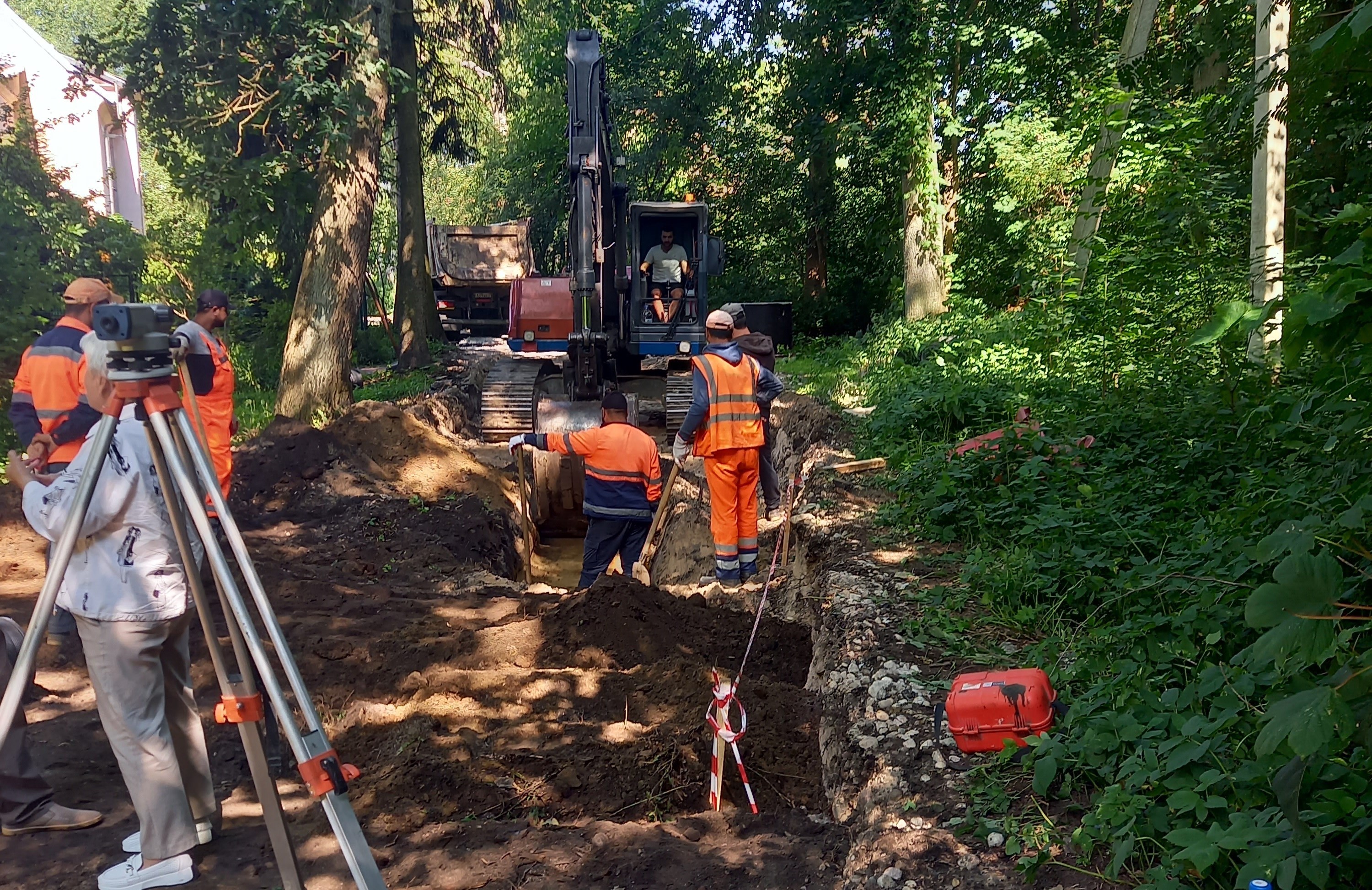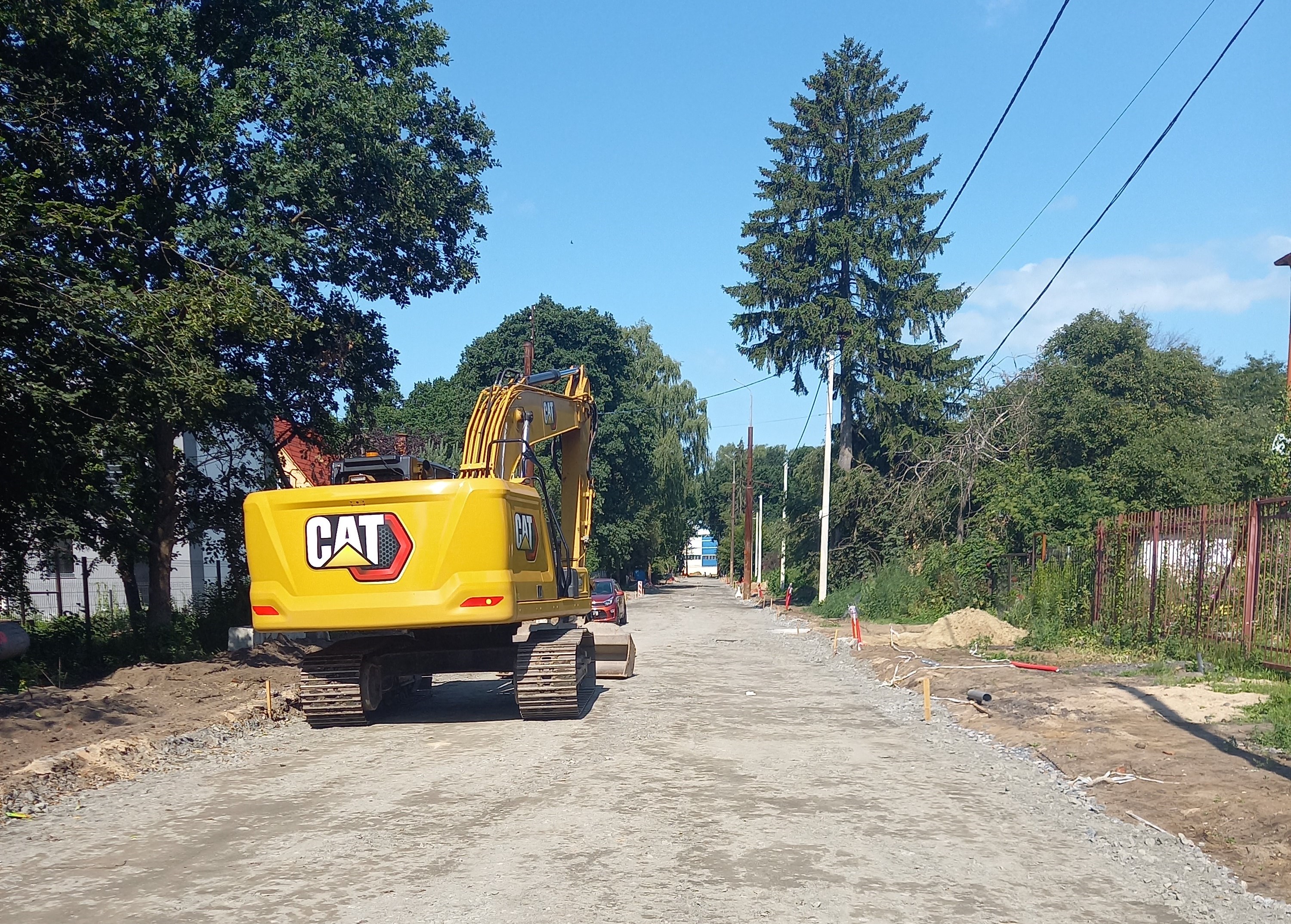 Дорожники продолжили разработку грунта на подходах к путепроводу по ул. А. Суворова, устройство песчаного и щебёночного основания на месте старой мостовой. Работы идут по графику, в конце июля планируется уложить первый асфальт.