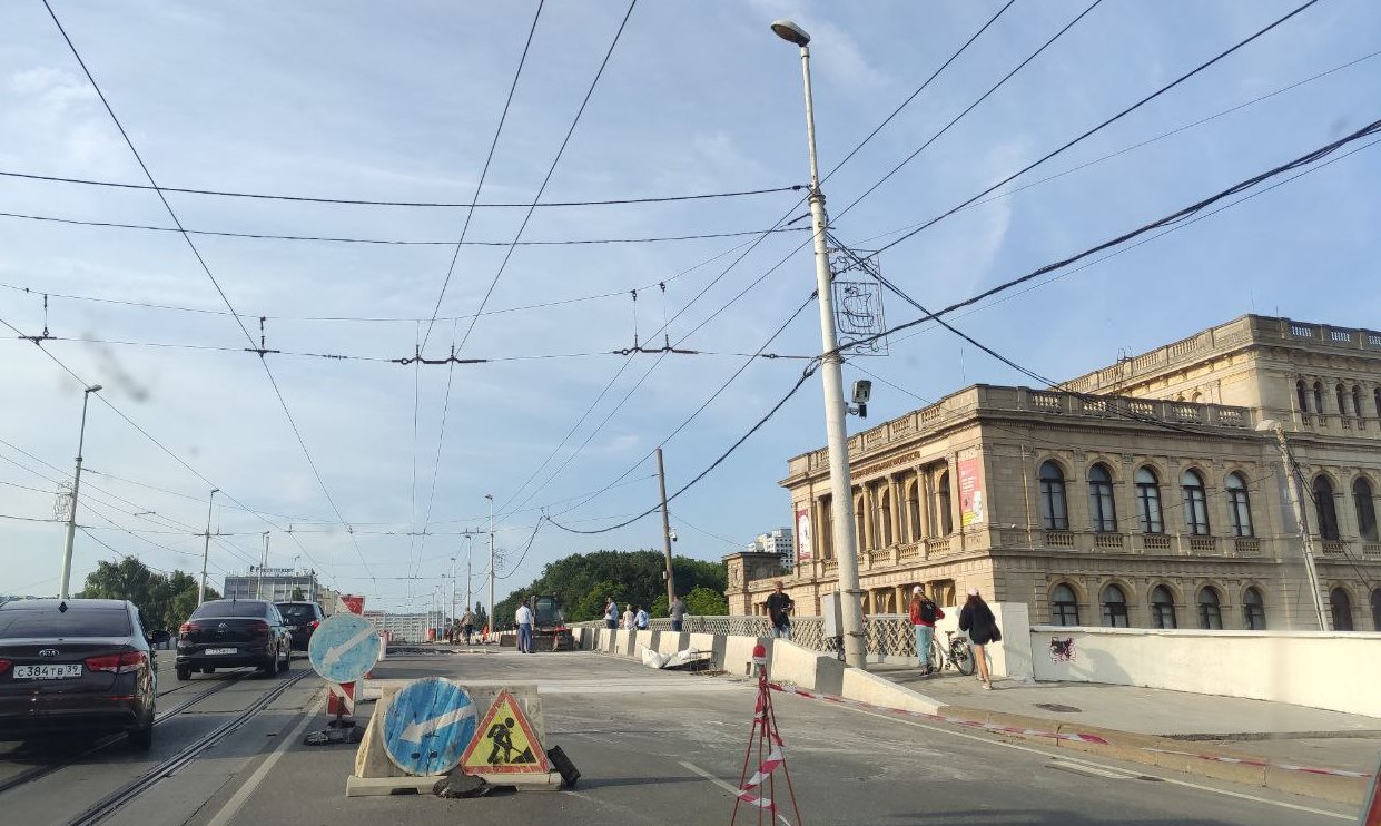 На первом эстакадном мосту вскрытие показало, что необходимо ремонтировать практически все деформационные швы. С прошлых выходных, когда начались работы, пять швов уже сделали. На этих выходных мостовики будут принимать бетон еще на трёх швах.