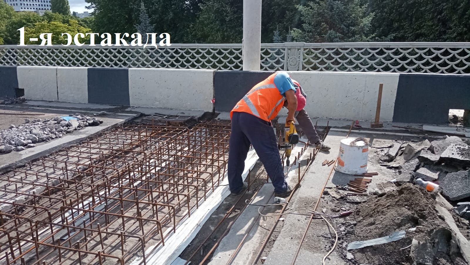 На 1-й эстакаде вскрыты все участки с деформационными швами. Тринадцать участков готовы в полном объёме, ещё три участка мостовики подготавливают к бетонированию.