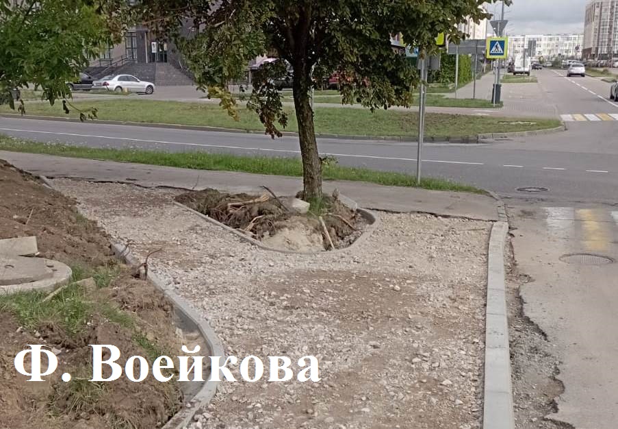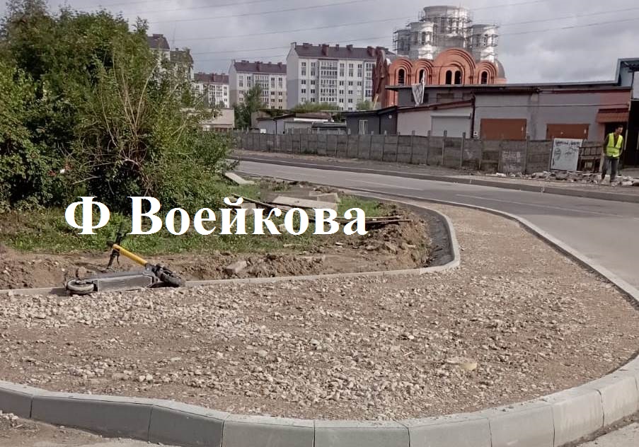 Устройство тротуаров по ул. Федора Воейкова (от дома № 9 по ул. Федора Воейкова до ул. Петра Панина: установка бортового камня, укладка асфальта.