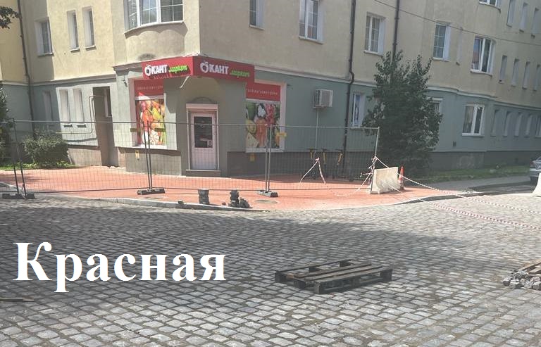 Капремонт ул. Красной: мощение проезжей части и укладка тротуарной плитки продвинулось за перекрёсток с ул. Косм. Пацаева. Со стороны ул. Маршала Борзова готовят основание, укладывают слои песка и щебня, выставляют бортовой камень.