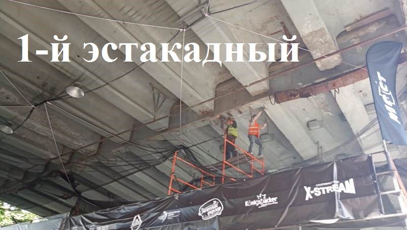 Первая эстакада: в конце недели планируется принять бетон на последние швы и начать отсчёт времени его выдержки, в выходные постараются открыть очередной участок. Практически завершены работы в подмостовом пространстве, в том числе над баскетбольной площадкой.