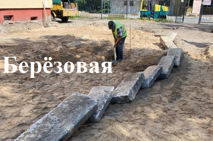 Устройство подъездных путей и парковочных мест в районе школы № 39 по ул. Березовой: установка гранитного борта.