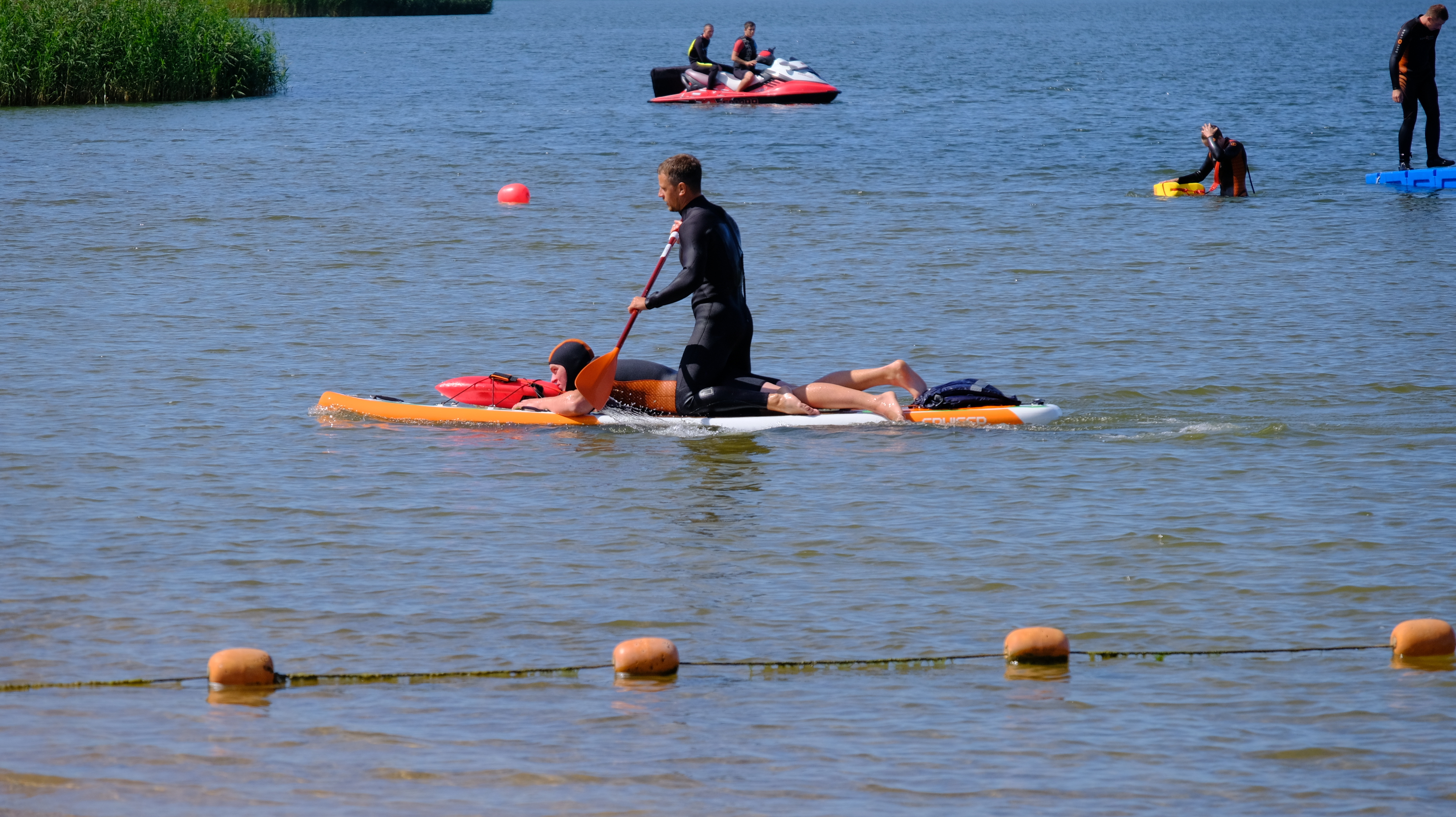 Сегодня, 11 августа, на пляже карьера у СНТ «Мечта» в мкрн. Прибрежный стартовал первый фестиваль водно-спасательного спорта. В нём приняли участие 7 команд: