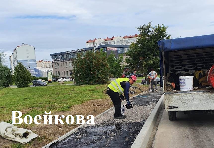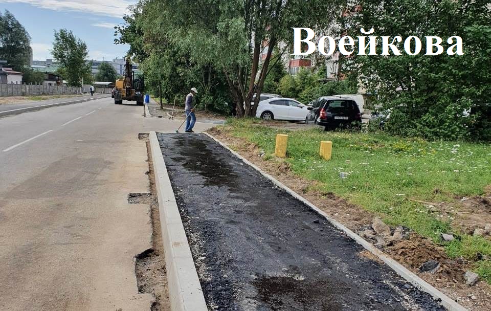 Устройство тротуаров по ул. Федора Воейкова (от дома № 9 по ул. Федора Воейкова до ул. Петра Панина): укладка асфальта, расширение на отдельных участках до нормативной ширины.
