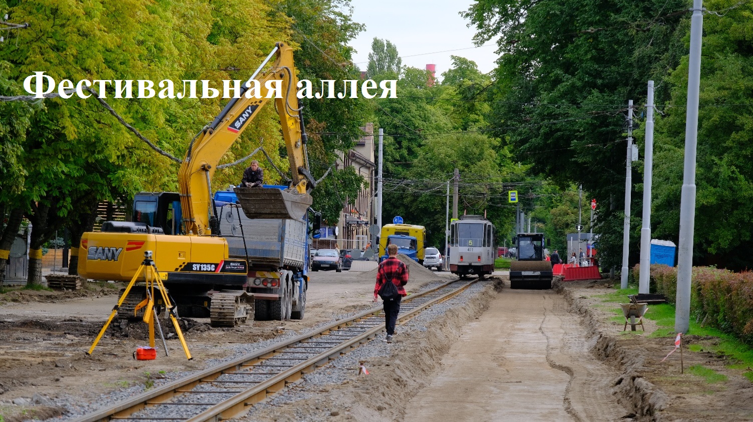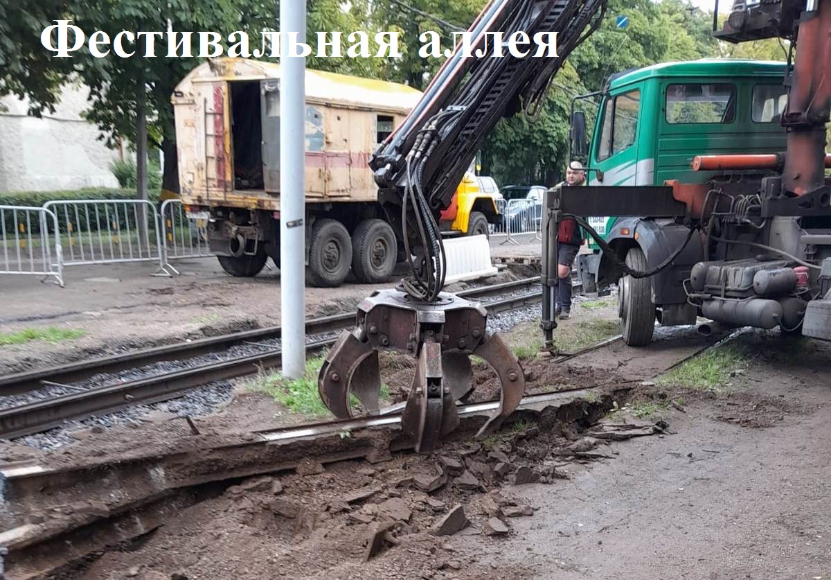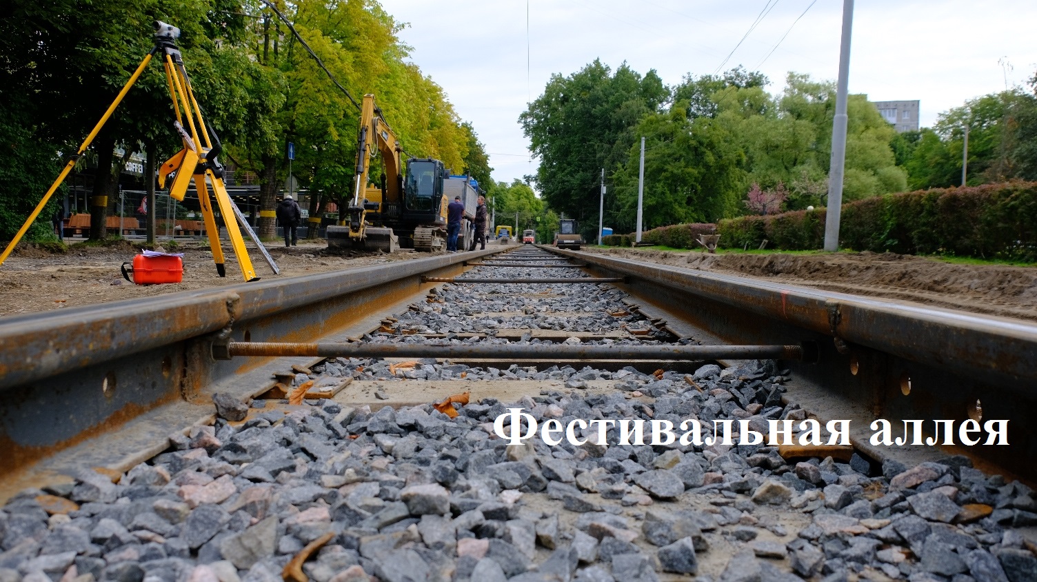 На этой неделе на Фестивальной аллее работали путейцы МКП «Калининград-ГорТранс». Они демонтировали рельсы, шпалы, скрепления, откопали котлован шириной 3 метра, длиной 182 метров. Уплотняли земляное полотно, отсыпали песчаное из песка, в пятницу запланирована укладка щебеночного основания, в субботу - укатка, в воскресенье – укладка шпал, на понедельник запланирован завоз рельсов на объект.