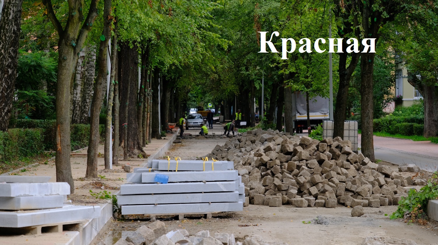 Капремонт ул. Красной: устройство плиточного покрытия, корыта проезжей части, основания проезжей части, установка бордюра и гранитного борта, устройство покрытия проезжей части из брусчатки. С 25 августа по 27 октября для продолжения работ закрывается для движения транспорта очередной участок проезжей части ул. Красной от ул. Лейт. Яналова до ул. Чекистов. Подрядчик по контракту должен сдать весь объект в январе 2024 года, но открывать отремонтированные участки будут поэтапно до конца текущего года. Одновременно с дорожными работами на Красной идёт перекладка теплотрассы и других сетей.