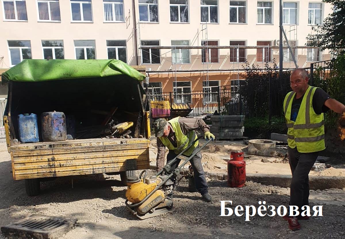 Устройство подъездных путей и парковочных мест в районе школы № 39 по ул. Березовой: установка гранитного борта, устройство песчаного и щебеночного основания. Такие же работы начались в районе школы № 3 на Октябрьской площади.