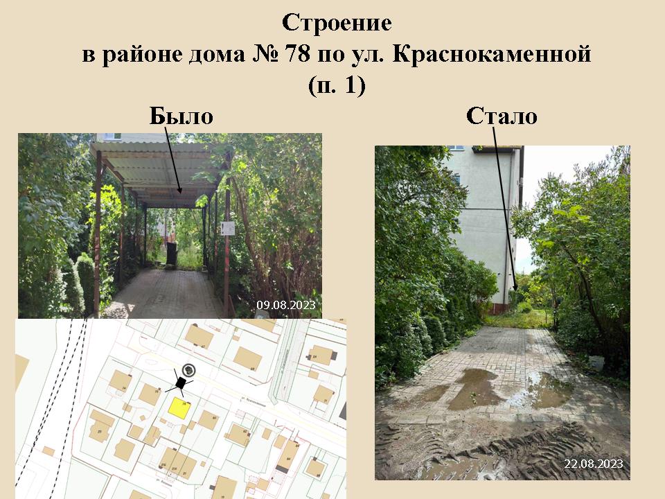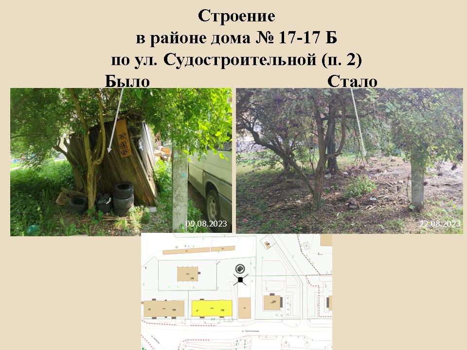 Самовольно возведенные строения снесли на ул. Машиностроительной 146-156, Краснокаменной 78, Судостроительной 17-17б, Кошевого 17. Ограждения убрали с Ленинского проспекта 90, Тургенева 31а, 37, 39, 41, Шишкина 14, Баженова 17-19.