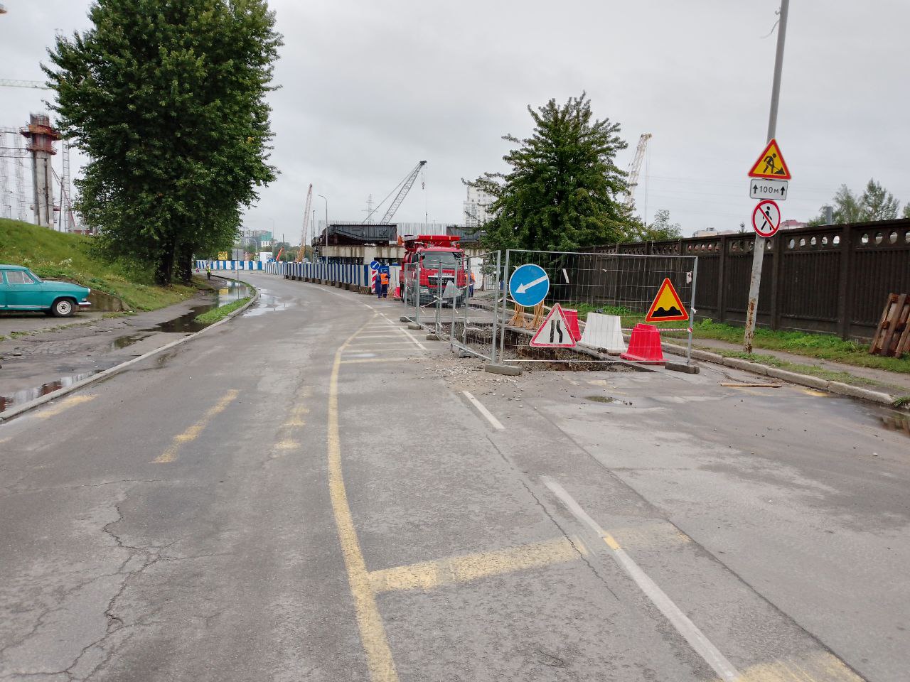 Движение по путепроводу по ул. А. Суворова после восстановления аварийного участка коллектора и укладки асфальта планируется открыть 10 сентября.