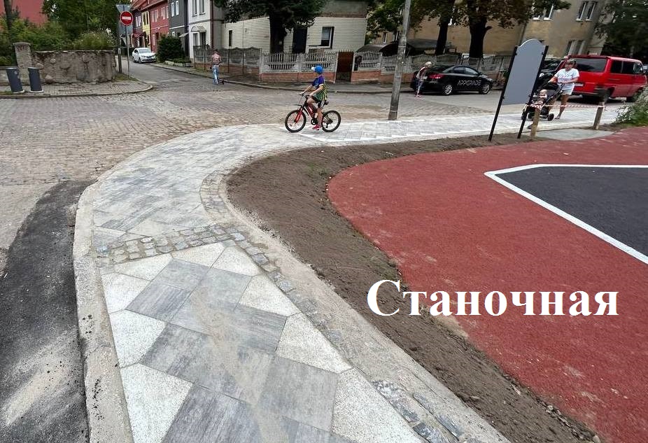 На тротуаре по Станочной - Ремонтной в районе спортплощадки – заканчивается укладка плитки.