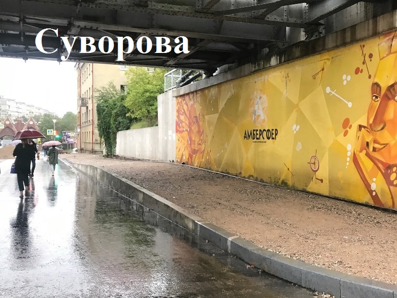 Капитальный ремонт подходов к путепроводу по ул. А. Суворова: дорожники устраивают песчаное и щебёночное основание на тротуаре, выставляют бортовой камень, прокладывают муниципальные кабельные сети. Из-за необходимости замены участка трубы «Водоканалом» возобновление движения по путепроводу откладывается до 10 сентября.