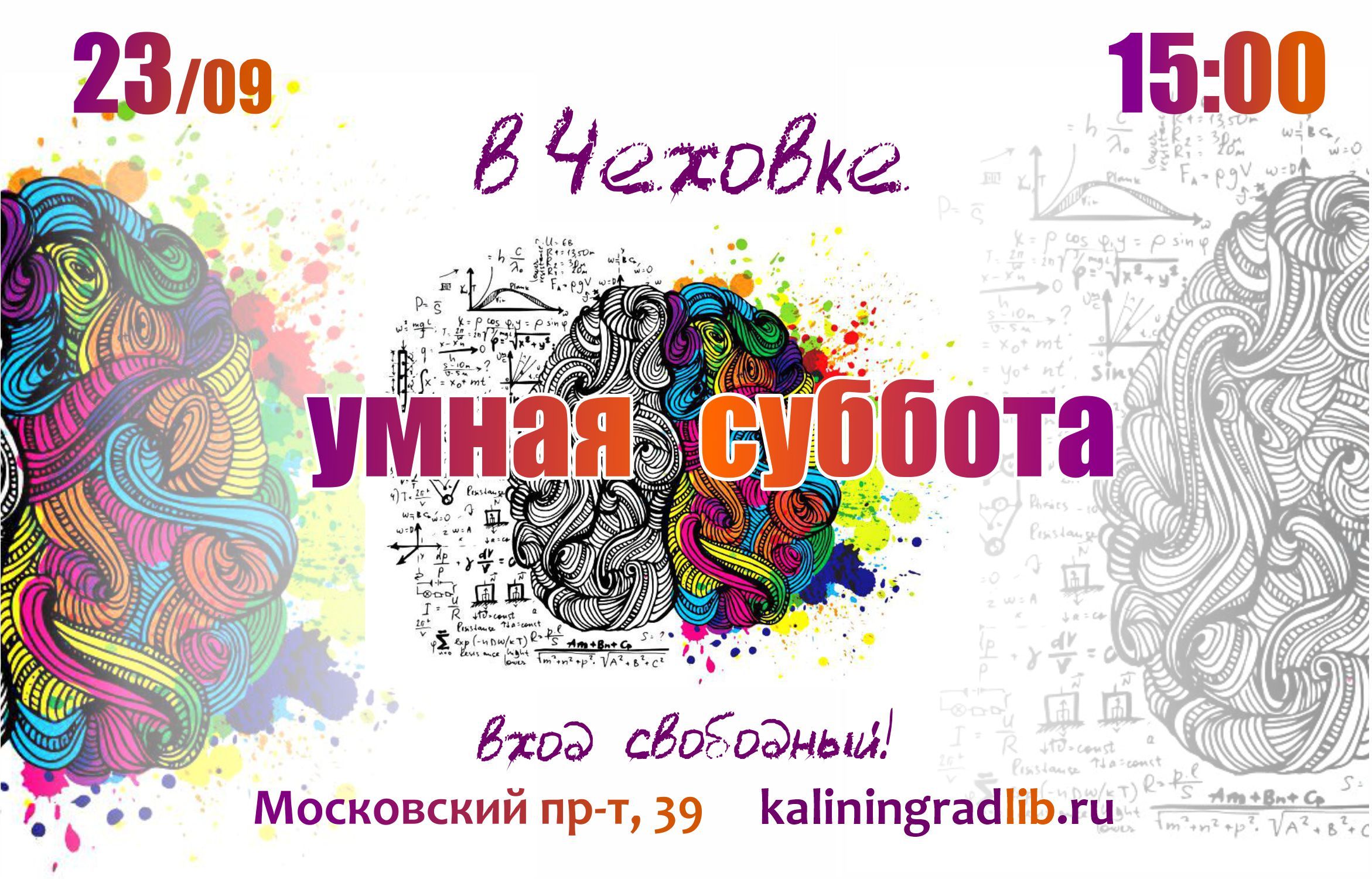 23 сентября в Центральной городской библиотеке им. А.П. Чехова (Московский пр-т, 39) состоится интеллектуальный день для всей семьи «Умная суббота».