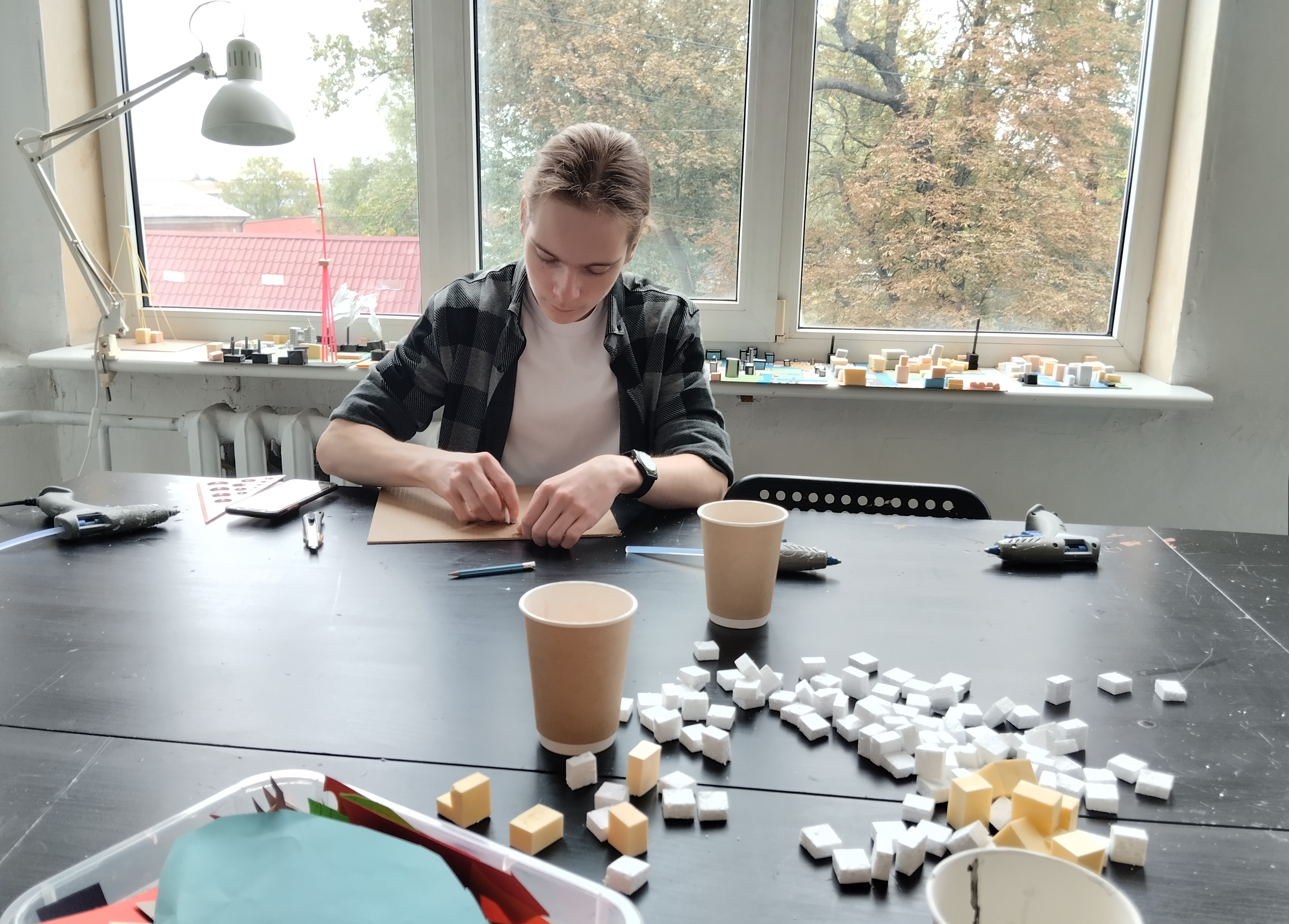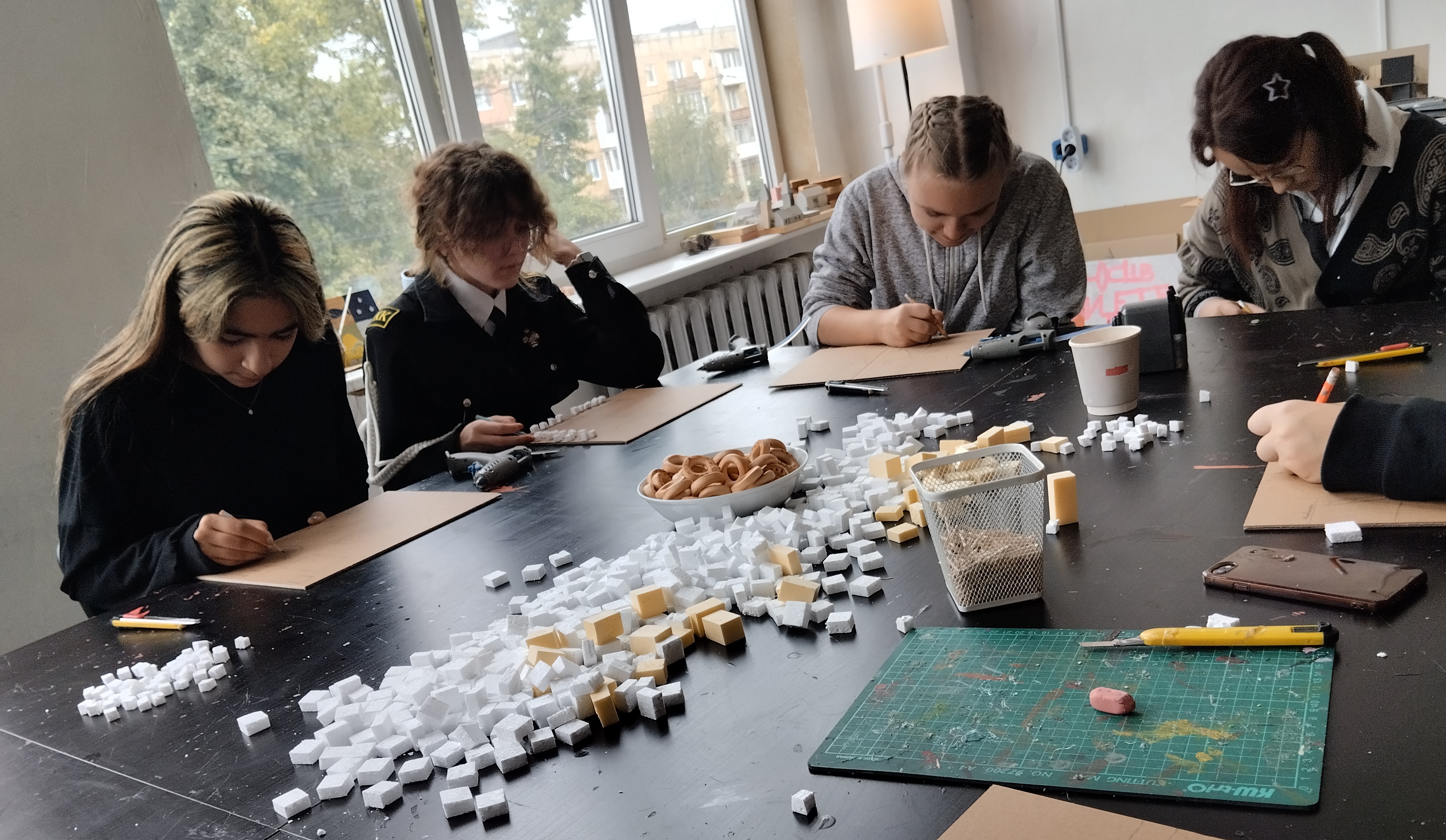 В рамках лекционной части ребята узнали о том, как появилась современная архитектура и начали формироваться современные жилые районы. Ребята создали план нового района города на бумаге, а затем воспроизвели архитектурный макет.