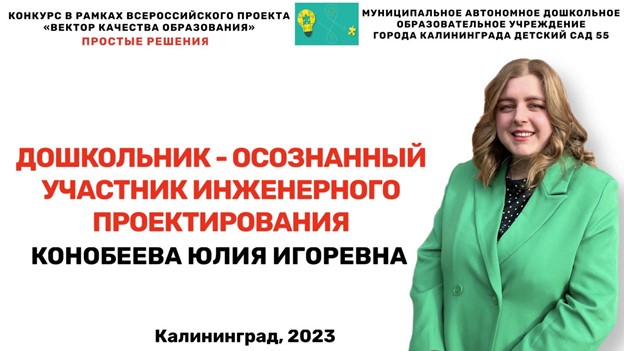 Юлия Конобеева, воспитатель МАДОУ детского сада № 55, приняла участие и стала финалистом конкурса в номинации «Воспитание школьника», представив разработки на тему «Дошкольник – осознанный участник инженерного проектирования».