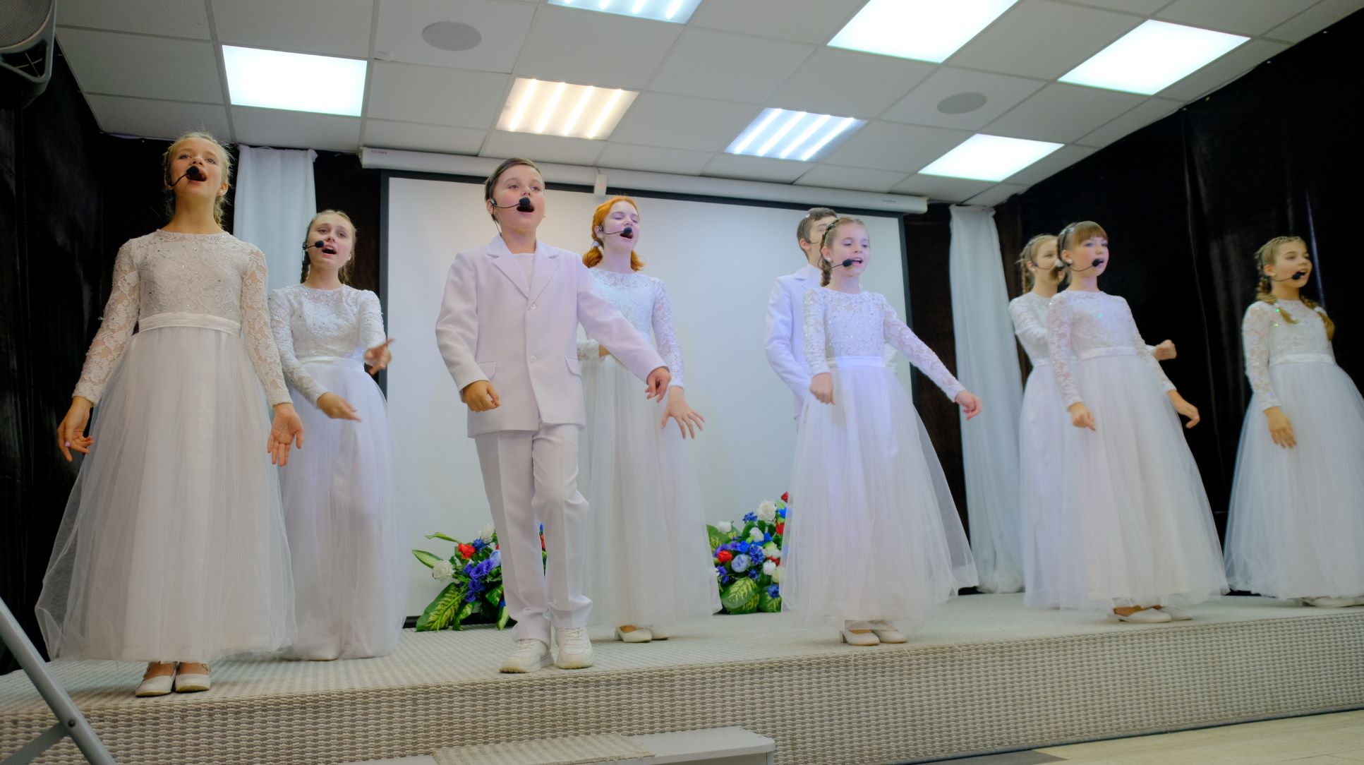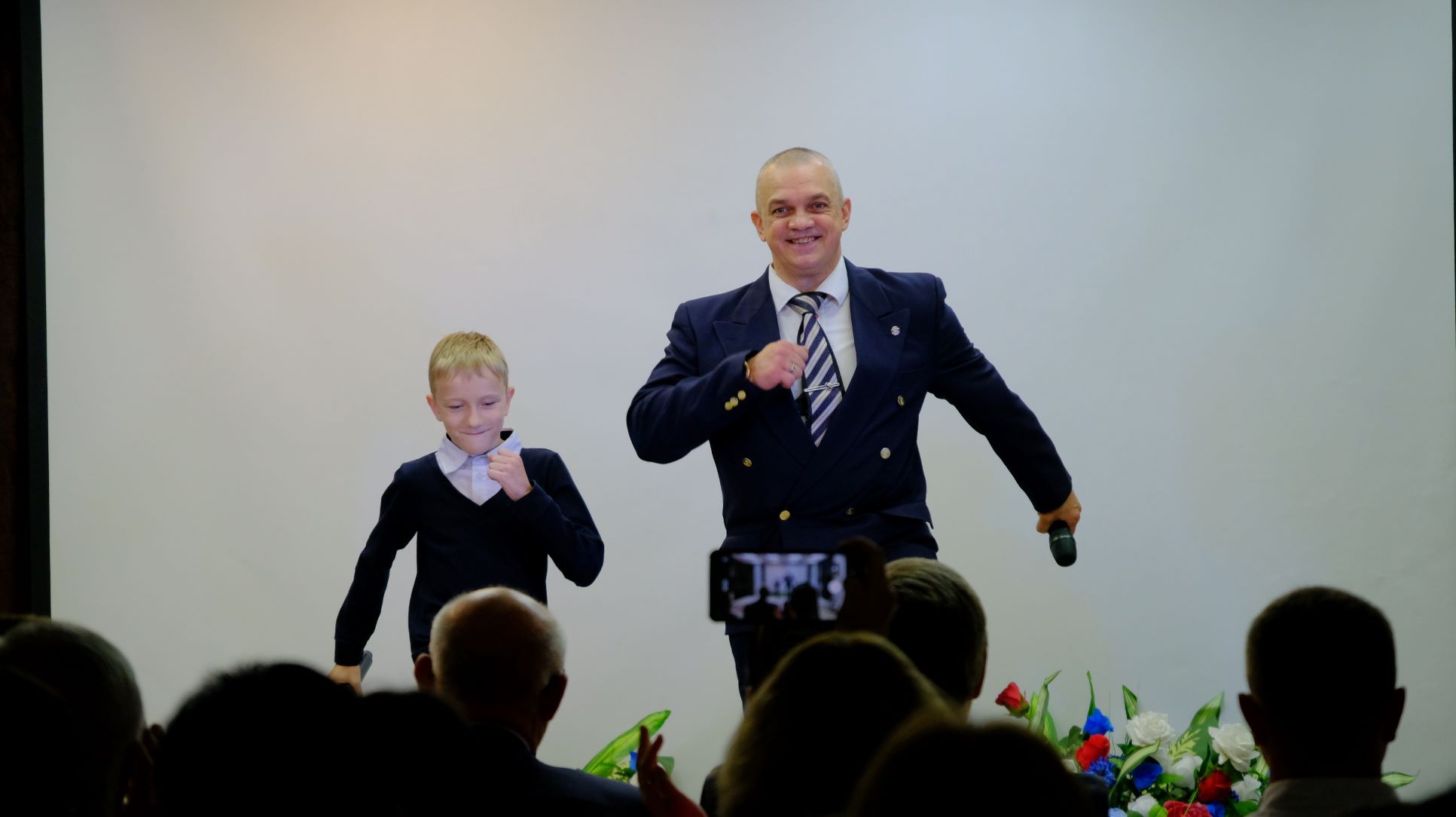 Дети приготовили видео – поздравления, их транслировали на экранах. Театр эстрады Дома искусств и коллектив Елены Щедриной подарили музыкальные номера.
