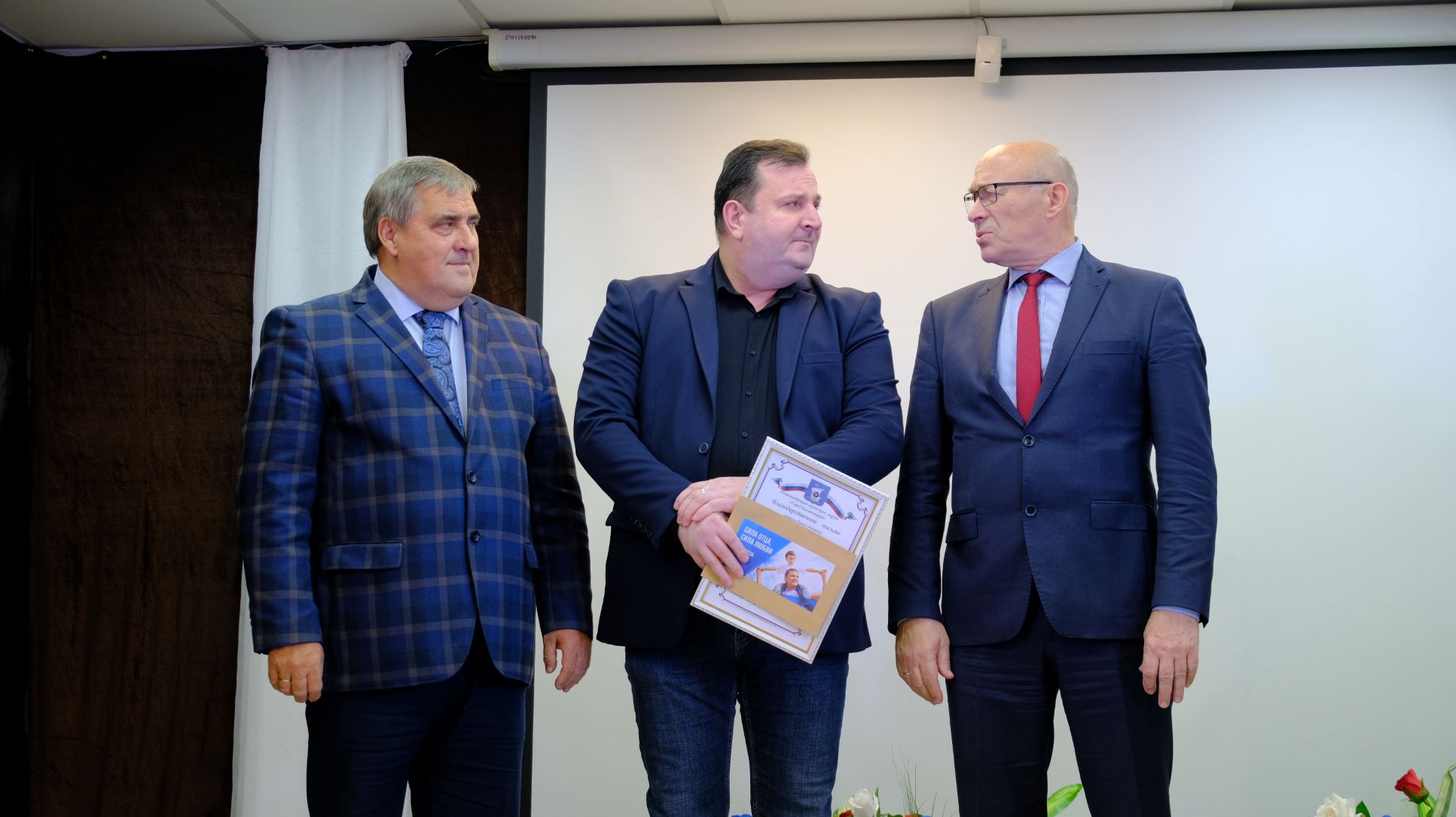 На церемонии чествования Благодарственными письмами и подарочными сертификатами отмечены десять отцов, среди них и многодетные отцы, и учителя, и участники СВО.