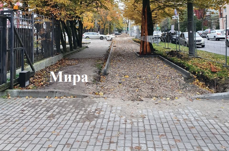 На проспекте Мира ремонтники устанавливают поребрики, песчаное основание возле дома №75, выполняют понижение бортового камня у дома №75, 77, отсыпают щебёночное основание у дома №83. Подрядчику выдано повторное предписание на устройство надлежащей защиты деревьев, а также наложен штраф.