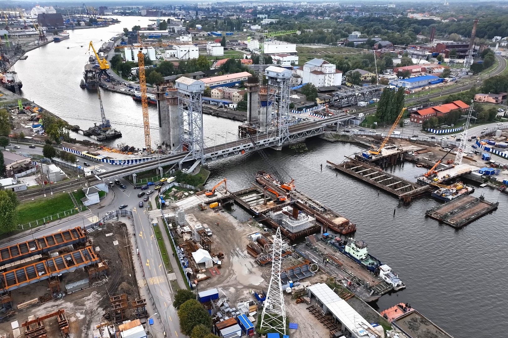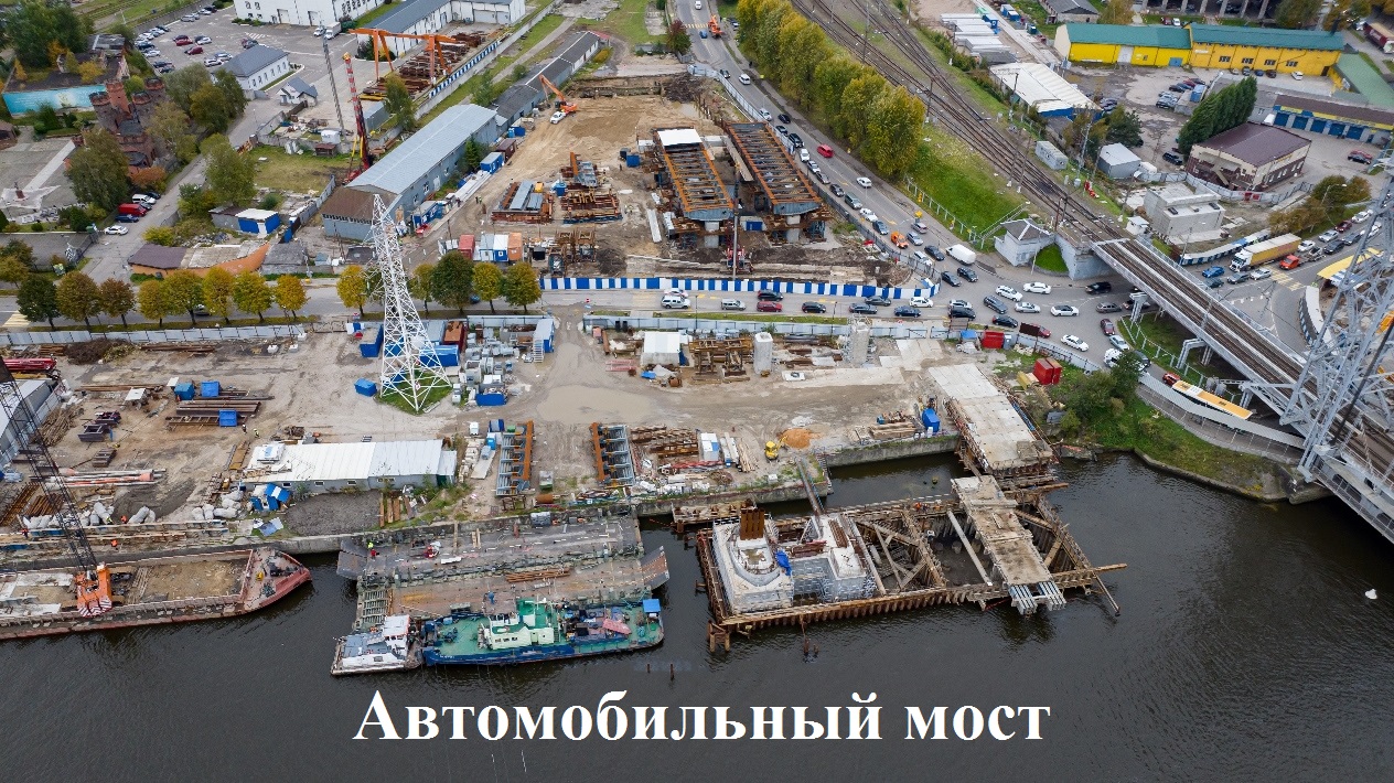 На самой масштабной дорожной стройке Калининграда - автомобильного моста через Преголю: на опоре №4 продолжают отбивку шламового слоя бетона, выполнено 60 процентов бетонирования выравнивающего слоя. На опоре №5 мостовики забетонировали тампонажный слой, откачали воду и готовятся к сбивке шламового слоя со свай, начата очистка поверхности тампонажного слоя от ила. В районе опоры №1 продолжаются работы по усилению грунтов железобетонными сваями по технологии устройства гибкого ростверка. Ведут работы по укрупненной сборке пролетного строения в осях опор 5-8, монтируют временные опоры для позиционирования балок в предпроектное положение. Приступили к укрупненной сборке ортотропных плит пролетного строения в осях опор 1-4. Выполняется погружение свай для устройства фундамента дождевой канализации на левом берегу. Начаты работы по возведению пролётного строения-3. Идут работы по бурению и бетонированию свай.