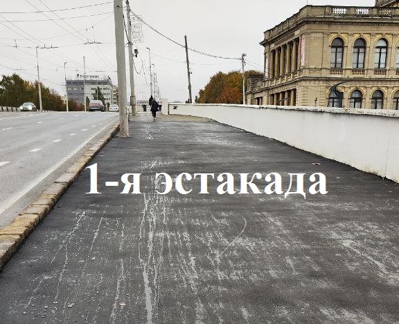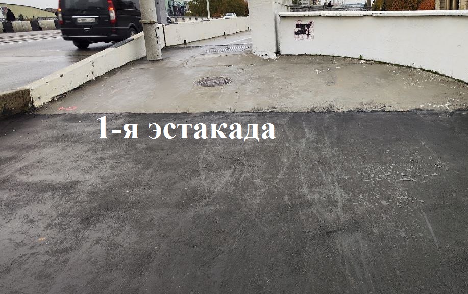 На этой неделе мостовики устранили дефекты покрытия тротуара и выровняли конструктивный перепад на спуске с 1-го эстакадного моста.