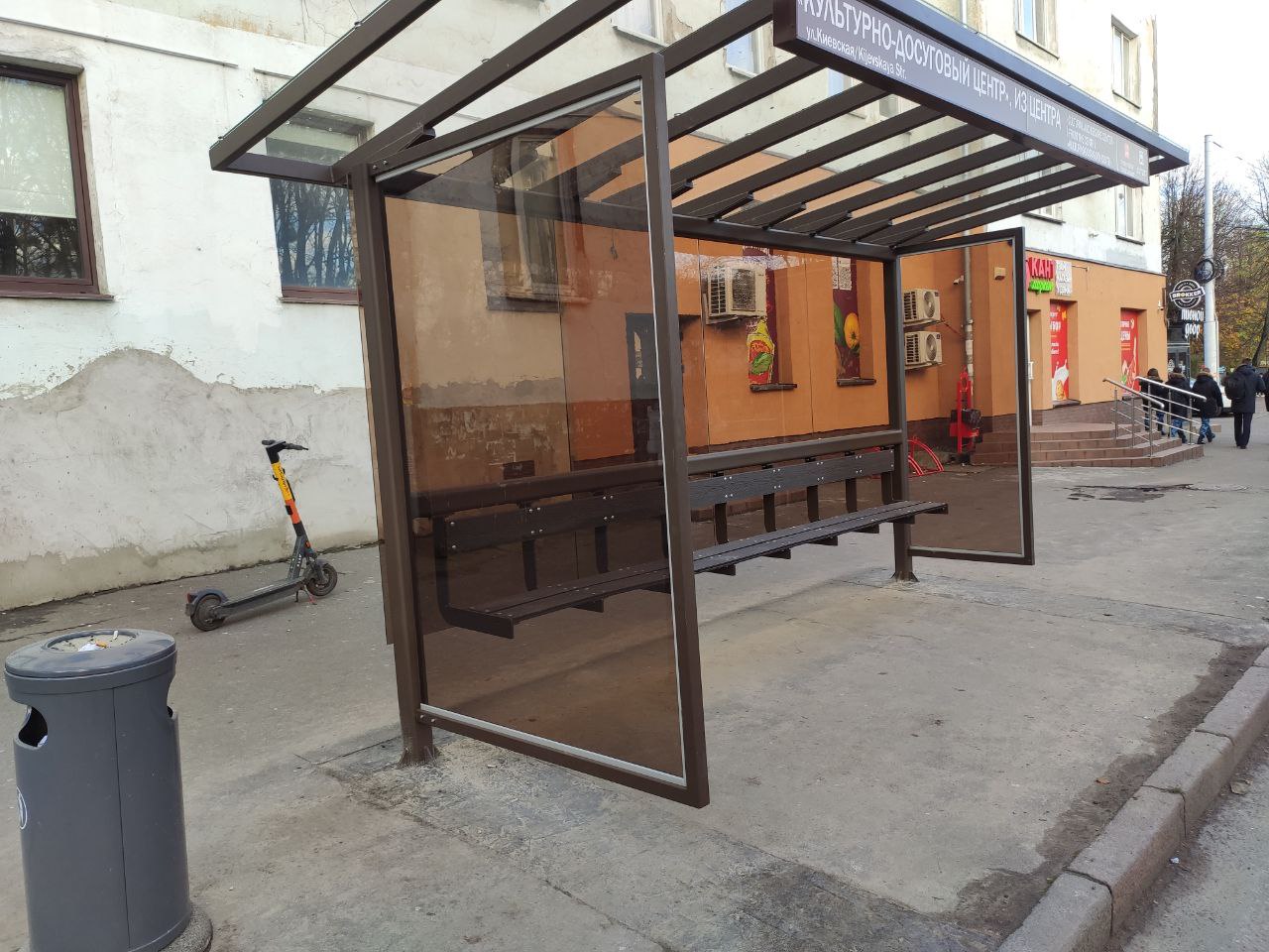 Три павильона установили на ул. Суворова, это остановка «ул. Щепкина» (в центр), «пер. Можайский» (в центр), «ул. Нансена» (из центра).