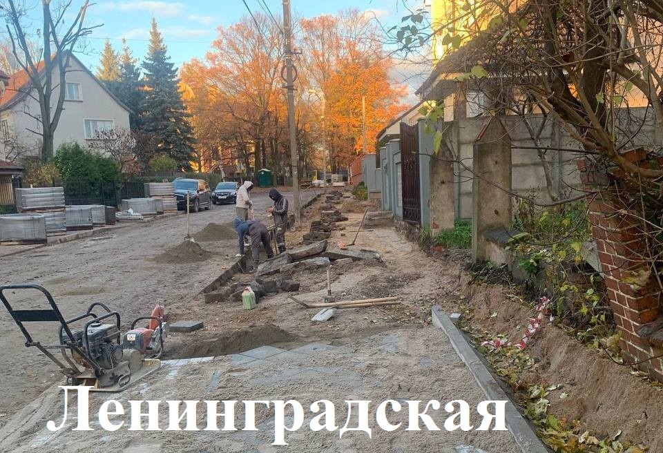 На автобусном кольце и пешеходной зоне у СК «Янтарный» прокладывают инженерные сети, устраивают песчаное и щебёночное основание, укладывают плитку. На парковке по Гайдара/Горького у детской поликлиники – озеленение, устранение замечаний.