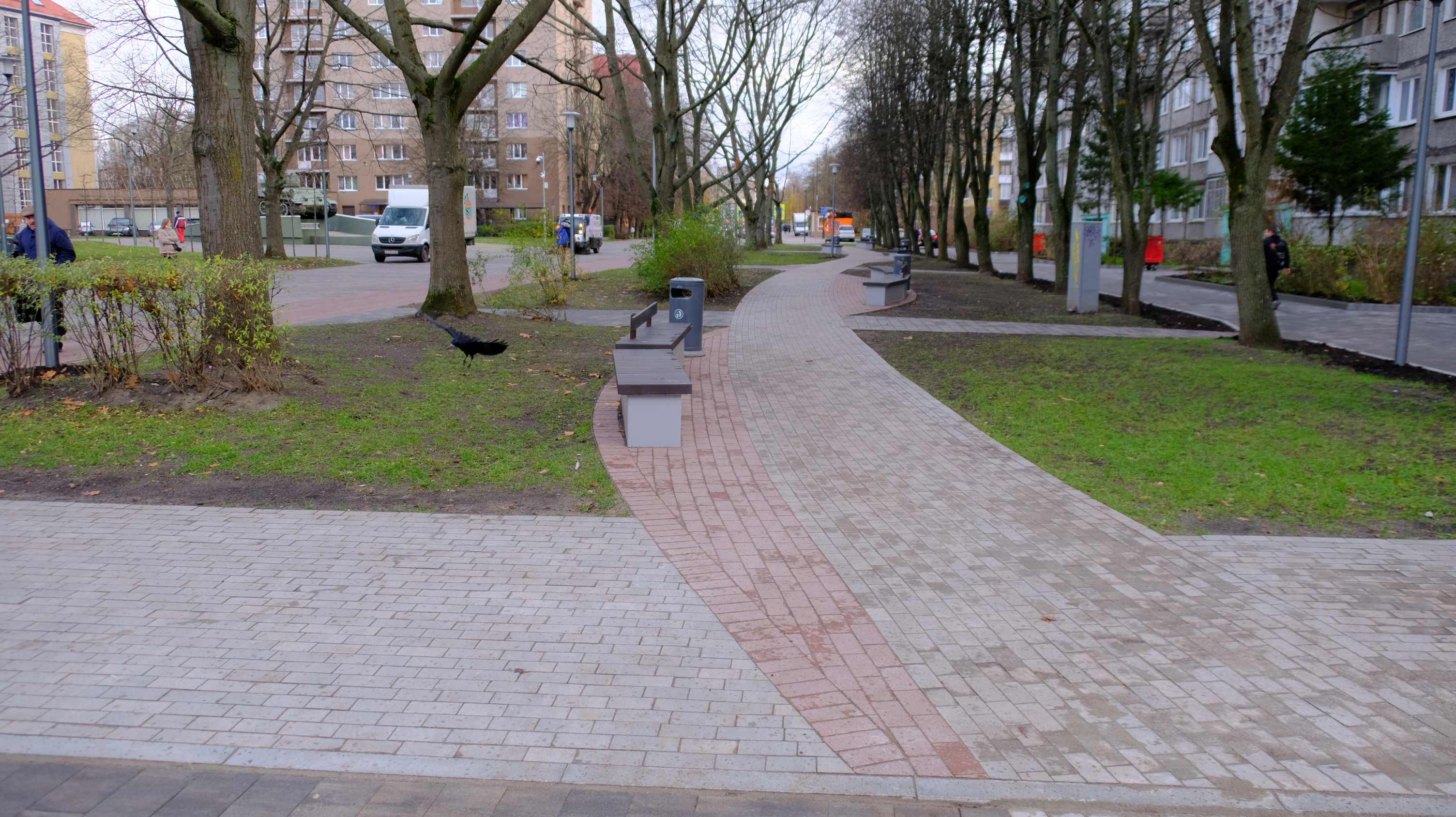 Заключительный этап благоустройства выполняло ООО “ИНПО”. Сейчас подрядчик устраняет последние замечания заказчика, готовится передать объект городу. Согласно проекту на основных пешеходных направлениях заменено покрытие на плитку, добавлены новые дорожки, организована велодорожка, установлены скамейки, урны, новые фонари, проведено дополнительное озеленение территории, проложены кабели для “Безопасного города”. До конца следующей недели ожидается согласование ГИБДД проекта организации дорожного движения.