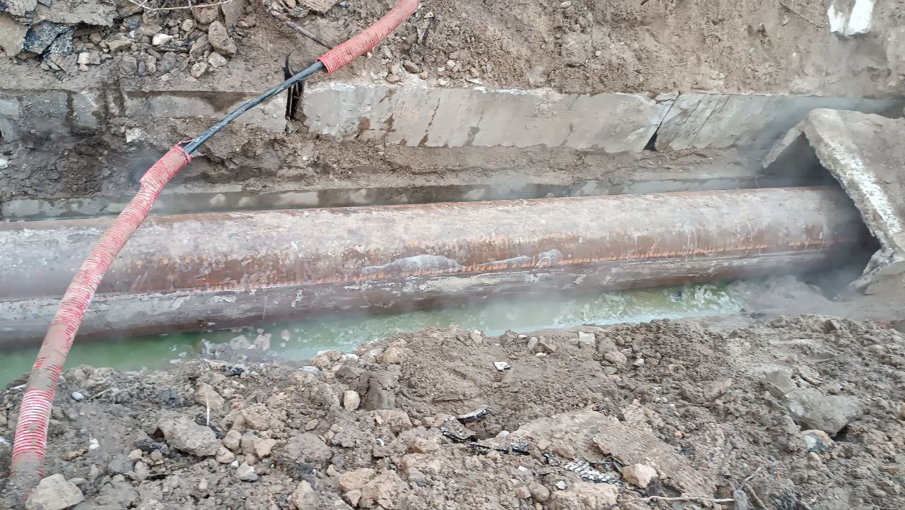 С 5 утра аварийные бригады снова работаютна месте утечки. РВероятнее всего подключение потребителей к теплу осуществится до конца рабочего дня 13 декабря 2023 года.