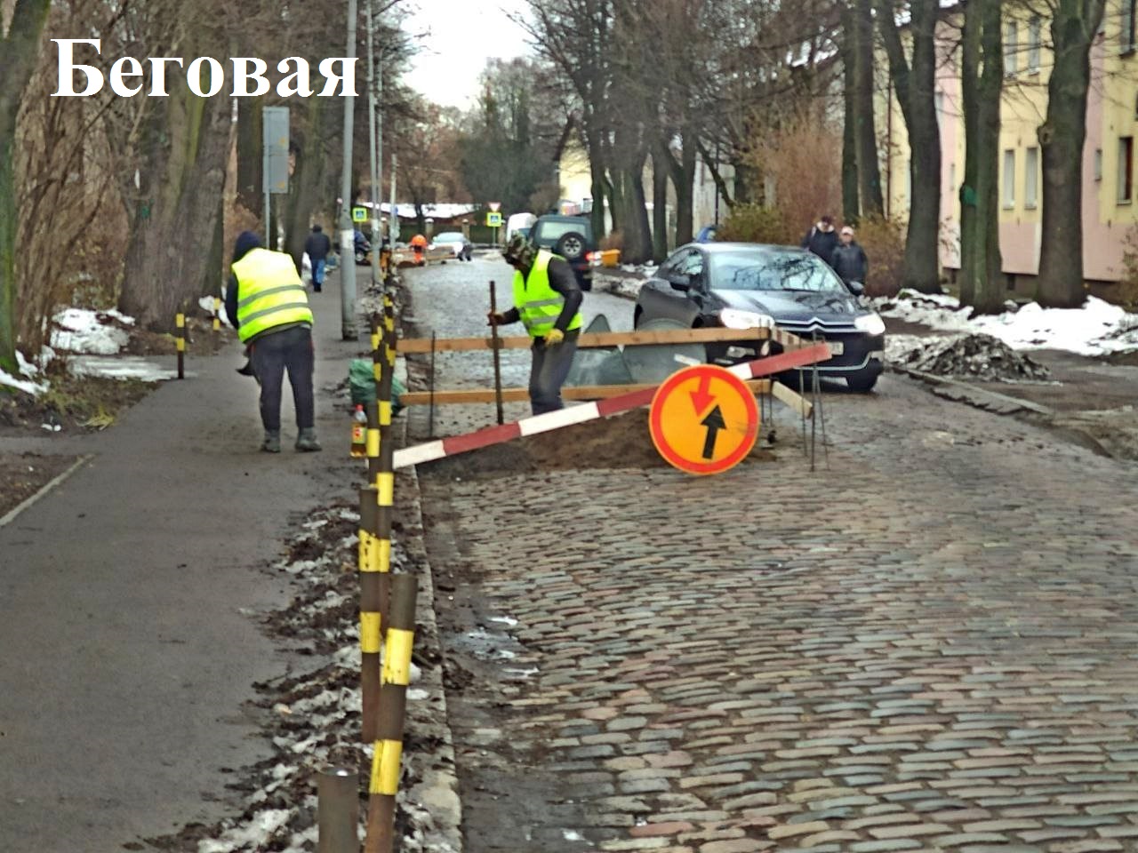 Зима притормаживает, но не останавливает дорожные работы в Калининграде.